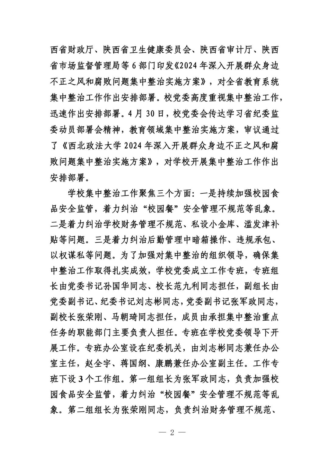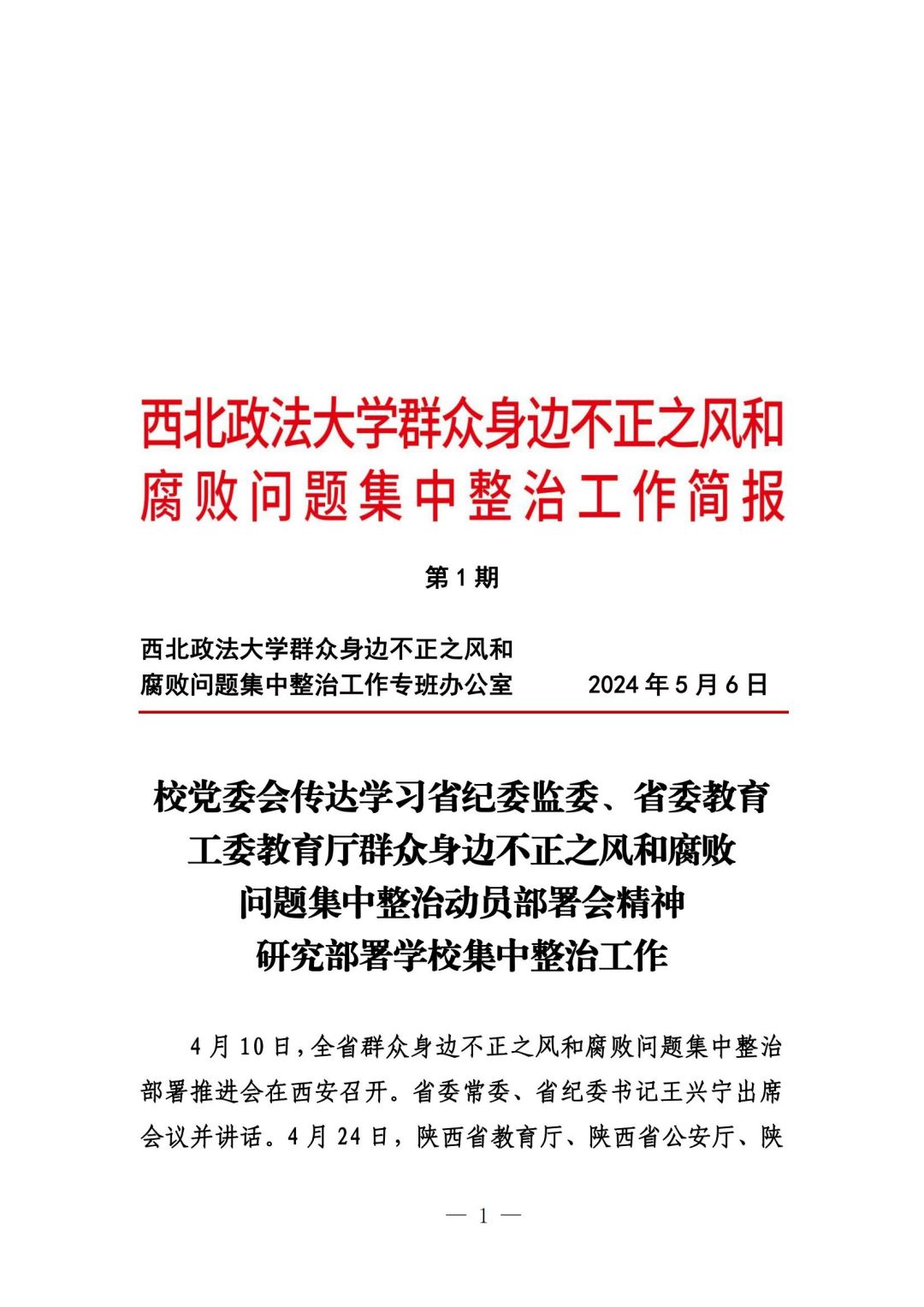 西北政法大学群众身边不正之风和腐败问题集中整治工作简报第一期