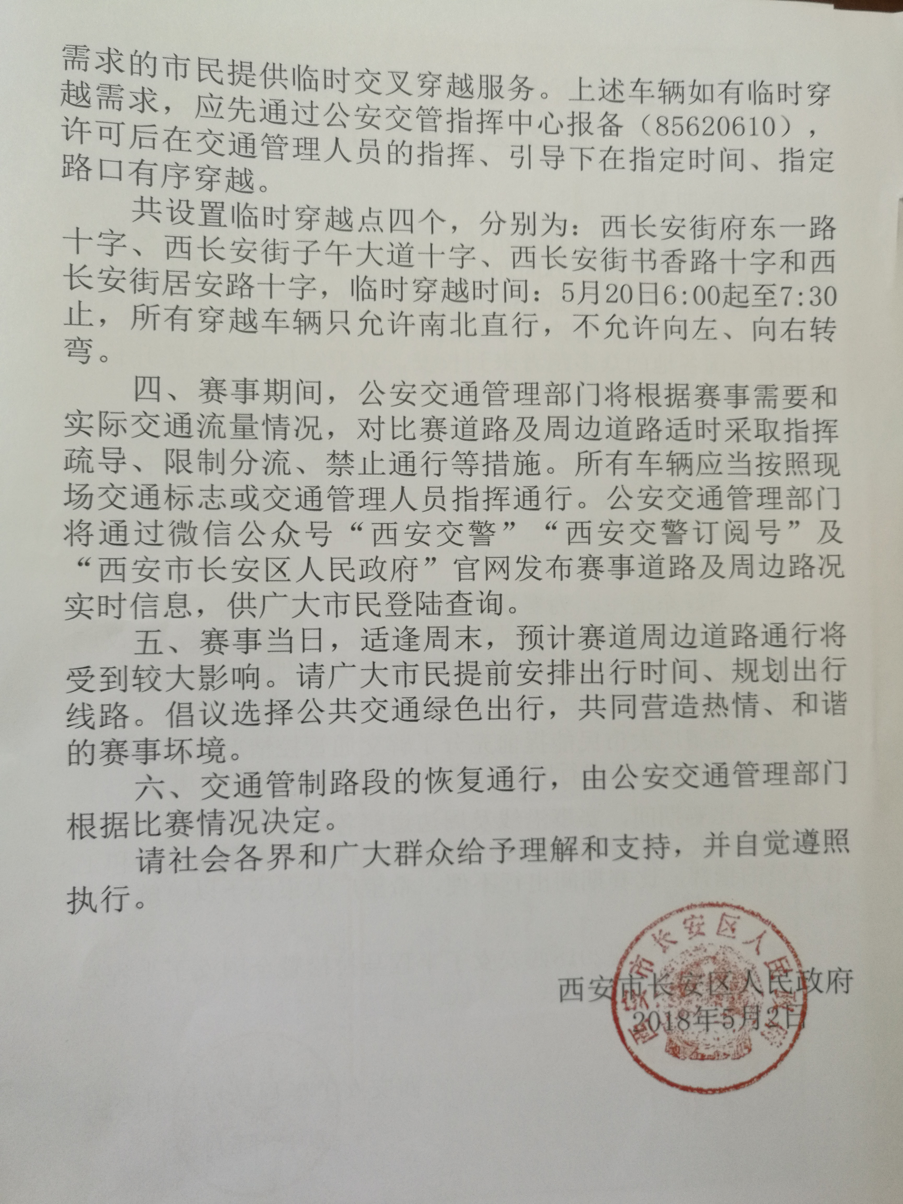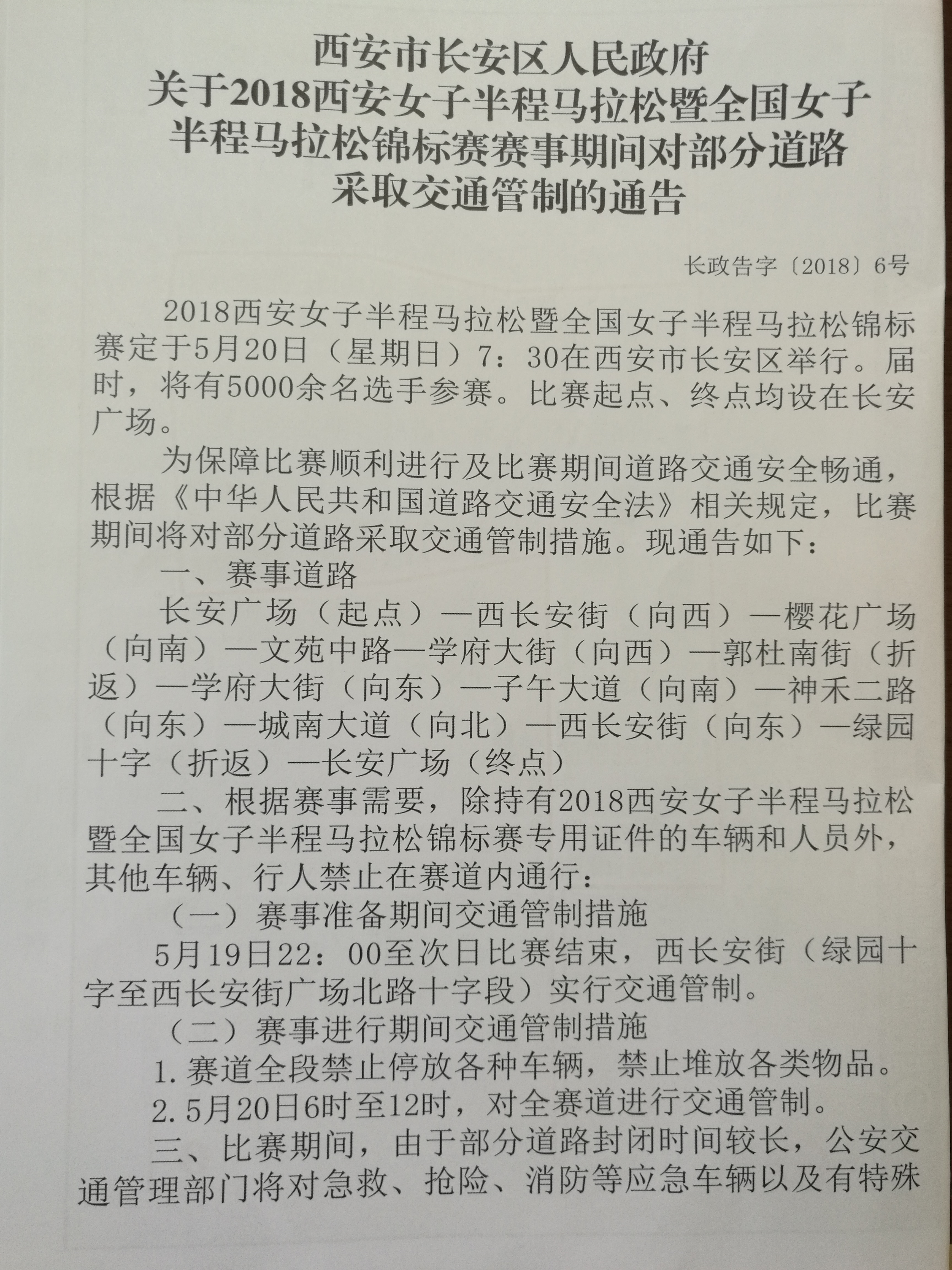 接长安区政府通知,2018西安女子半程马拉松暨全国女子半程马拉松锦标赛于5月20日在长安区举行。