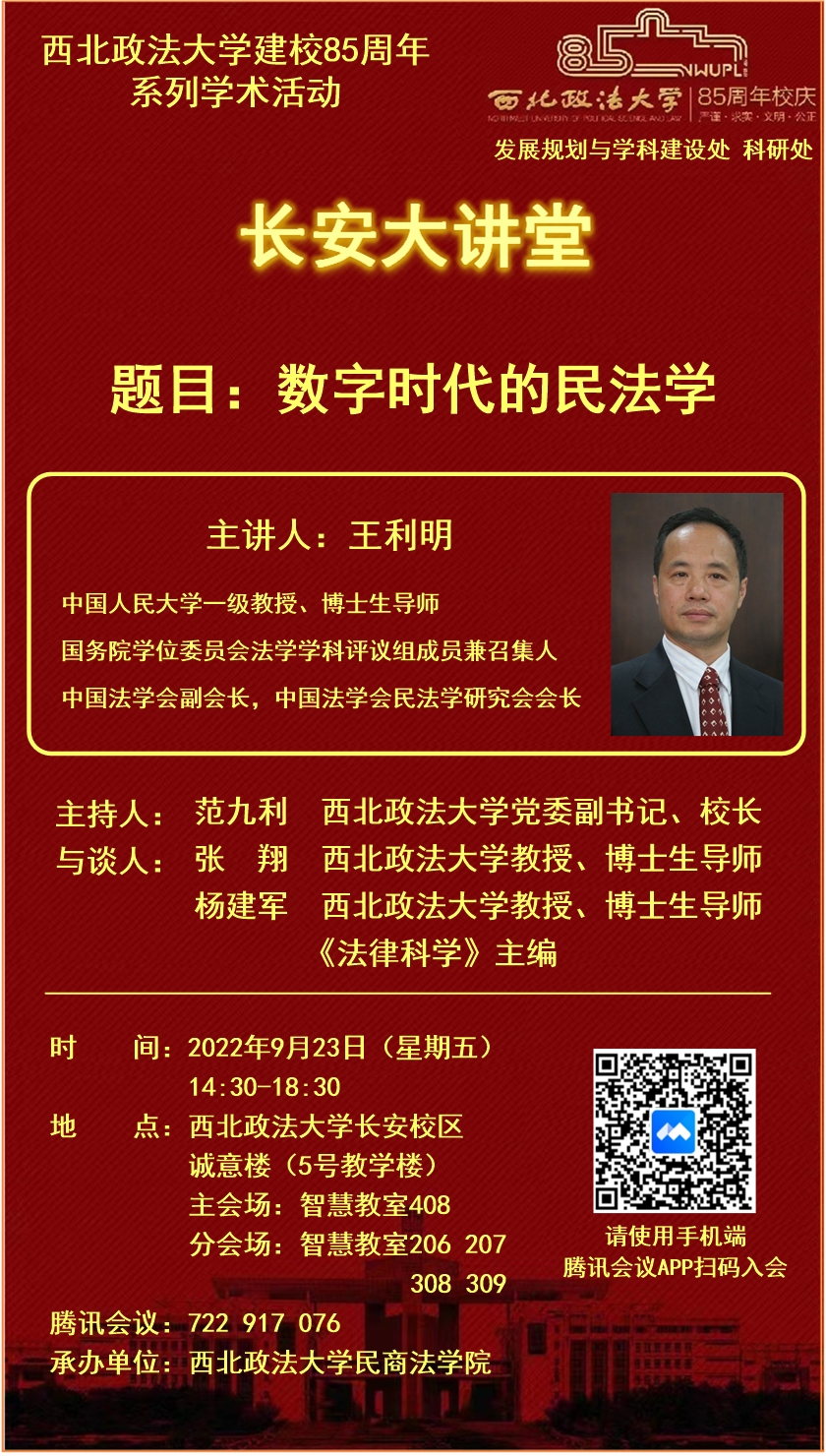【长安大讲堂】【校庆系列讲座】数字时代的民法学