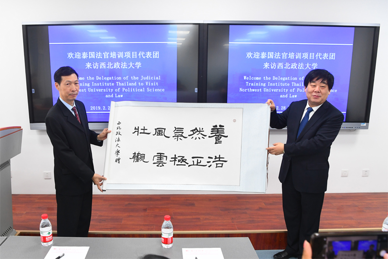 2月28日、3月1日上午,泰国法官培训项目代表团近80名法官分两批次在团长泰国上诉法院专业案件首席法官卓查伊·如吉尼奈和泰国第三区首席法官办公室副首席法官桑格厚姆·梅卡隆拉克的带领下访问我校,校长杨宗科教授在长安校区5号教学楼智慧教室与代表团会面并致欢迎词,校长助理、博士生导师、最高人民法院司改办副主任汪世荣教授为代表团做了专题培训。 杨宗科对来自友好邻邦的泰国法官代表团一行来访我校交流考察表示诚挚欢迎,对我校与泰国高等教育和法律机构之间的良好互动表示充分肯定。他表示,西北政法大学被誉为政法人才培养国家队的“五院四系”之一,是国家培养法官、检察官、律师等法律人才的重要基地,现有在校学生15000余人,涉及本、硕、博多层次人才培养,有一批在中国具有重要学术影响力的法学教授和专家学者,为双方开展法律教育合作奠定了坚实基础。同时,学校大力拓展国际交流途径,与七十余所世界知名高校建立了学术合作关系;注重与“一带一路”沿线国家开展教育国际合作,近年来以“一带一路”倡议为契机,学校充分发挥自身学科优势,积极参与到“一带一路”沿线法律教育合作和法治建设中,并已同泰国北大年大学、皇家普吉大学等高校建立了合作关系。相信通过此次泰国法官的来华交流活动,定能推动中泰两国的学术交往与合作,以务实的合作共同繁荣两国法律教育的未来。 卓查伊·如吉尼奈首席法官对我校的接待和安排表示感谢,亦深感此次来华所见我国经济建设取得的巨大成就和法治建设取得的瞩目成果,同时表达了与我校寻求司法教育经验、开展法律实务合作以促进中泰两国法律教育合作的意愿。 随后,汪世荣教授分别为两批次代表团成员做了题为“中国的纠纷多元化解机制建设”的学术讲座,对纠纷化解机制的政策和制度规范、研究成果、人民调解等内容进行了细致阐述,展示了中国独具特色的传统司法文化,并与法官们就相关议题进行了广泛交流。(供稿:国际交流与合作处)