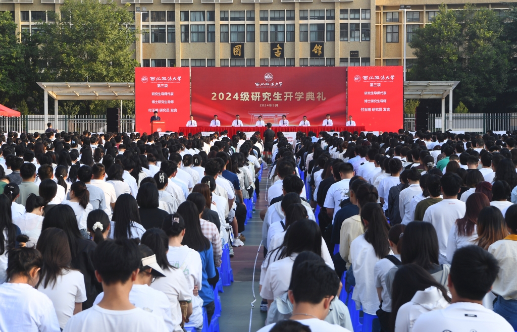 9月6日上午,我校2024级研究生开学典礼在雁塔校区田径场举行,共同迎接37名博士研究生和1773名硕士研究生新生的到来。校党委书记孙国华,校长范九利,校党委副书记、纪委书记、监察专员刘志彬,校党委副书记张军政,副校长张荣刚、马朝琦、赵全宇出席典礼。博士研究生各方向负责人,各研究生培养单位党政负责人,相关职能部门负责人,研究生辅导员和2024级研究生新生参加了本次典礼。典礼由校党委副书记郭武军主持。 孙国华为新生代表佩戴校徽 上午7时30分,开学典礼在庄严的升国旗仪式中拉开帷幕。 范九利代表全校师生对新生们加入西法大这个大家庭表示热烈的欢迎。在全国第40个教师节来临之际,他代表学校向全体教职员工致以诚挚的问候。他回顾了学校45年的研究生教育发展历程,经过不懈努力,学校研究生教育已贯通了从硕士到博士的两个阶段,涵盖七大一级学科,拥有了培养更多高端法治人才的平台和底气。他鼓励新生要播下“报国”“务实”“勤奋”的种子,把个人志向与报效国家贯通,树立起为中国式现代化挺膺担当的大志、壮志。 范九利强调,研究生是国家科研人才的后备军、是创新创造的主力军,理应把科学研究当作志业,走在创新创造的前列。他希望同学们要以“板凳要坐十年冷”的韧劲去治学,要以“师心而不师迹”的创新去治学,要以“一言为重百金轻”的品德去治学,赓续红色血脉,弘扬西法大的优良传统,勇于创新,开拓新知、探索未知,在推进强国建设,民族复兴伟业中绽放青春光彩。 郭武军主持典礼 《法律科学》编辑部副主编、博士生导师付玉明研究员作为导师代表发言。他希望同学们用心读书、增强专业本领,增识养慧、丰富生活印记,坚持锻炼、强身健体, 做一个灵魂有趣、有原则底线、有生命活力的人。 商学院(管理学院)2023级研究生刘睿琼作为在校研究生代表发言。她分享了积极参与社会实践,将所学知识运用到实际工作中的经历,建议同学们要磨练意志、勇于担当,聚焦理论前沿、国家需求,求真学问、研究真问题。 方向三2024级博士研究生郑嘉欣作为博士新生代表发言。在全国第40个教师节来临之际,她向辛勤耕耘在教育一线的老师们致以崇高的敬意,并谈到新生们应拓宽学术视野,培养研究能力,提升创新水平,强化实践意识。 行政法学院2024级硕士研究生丘名洁作为硕士新生代表发言。他号召同学们培养“研学著述多磨砺”的坚毅与韧性,坚持“且将新火试新茶”的勇气与胆识,在研究生阶段享受阅读、汲取文化、潜心钻研。 典礼进行了佩戴校徽仪式。新生们拥有了西法大人的身份标识,将勇做走在时代前列的奋进者、开拓者,志存高远、点亮信仰之光,探索前沿、追寻科研之光,全面成才、闪耀青春之光。 (供稿:党委研工部 研究生院 撰稿:高炜 摄影:杜超英 审核:常安)