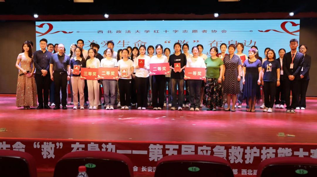 为积极响应国家“健康中国行动”, 5月31日下午,由校团委、门诊部、长安区红十字会共同主办,校红十字志愿者协会承办的西北政法大学“第五届应急救护技能大赛”在我校长安校区举行,200余名师生参加了此次活动。 比赛以情景剧的表现形式分为两人一组进行,以解说加实操的方式对心肺复苏术(CPR)和包扎技术进行现场演示,评委根据现场表现打分。活动组织严谨有序,形式多样活泼,内容充实丰满,充分展现出当代大学生对于应急救护技能的理解和应用。大赛历时1个月,经过周密充分的筹备,通过初赛的层层选拔,从我校一百余名参赛选手中选出15支代表队进入决赛。比赛共评出一等奖队伍1支,二等奖队伍2支,三等奖队伍3支及优秀奖队伍9支。 此次活动的举办,增进了师生对心肺复苏等救护知识的了解,增强了师生应对突发事件和自救互救的能力,对促进我校健康校园建设具有积极意义。 (供稿:门诊部 撰稿:王孜卓 审核:翁晓磊)
