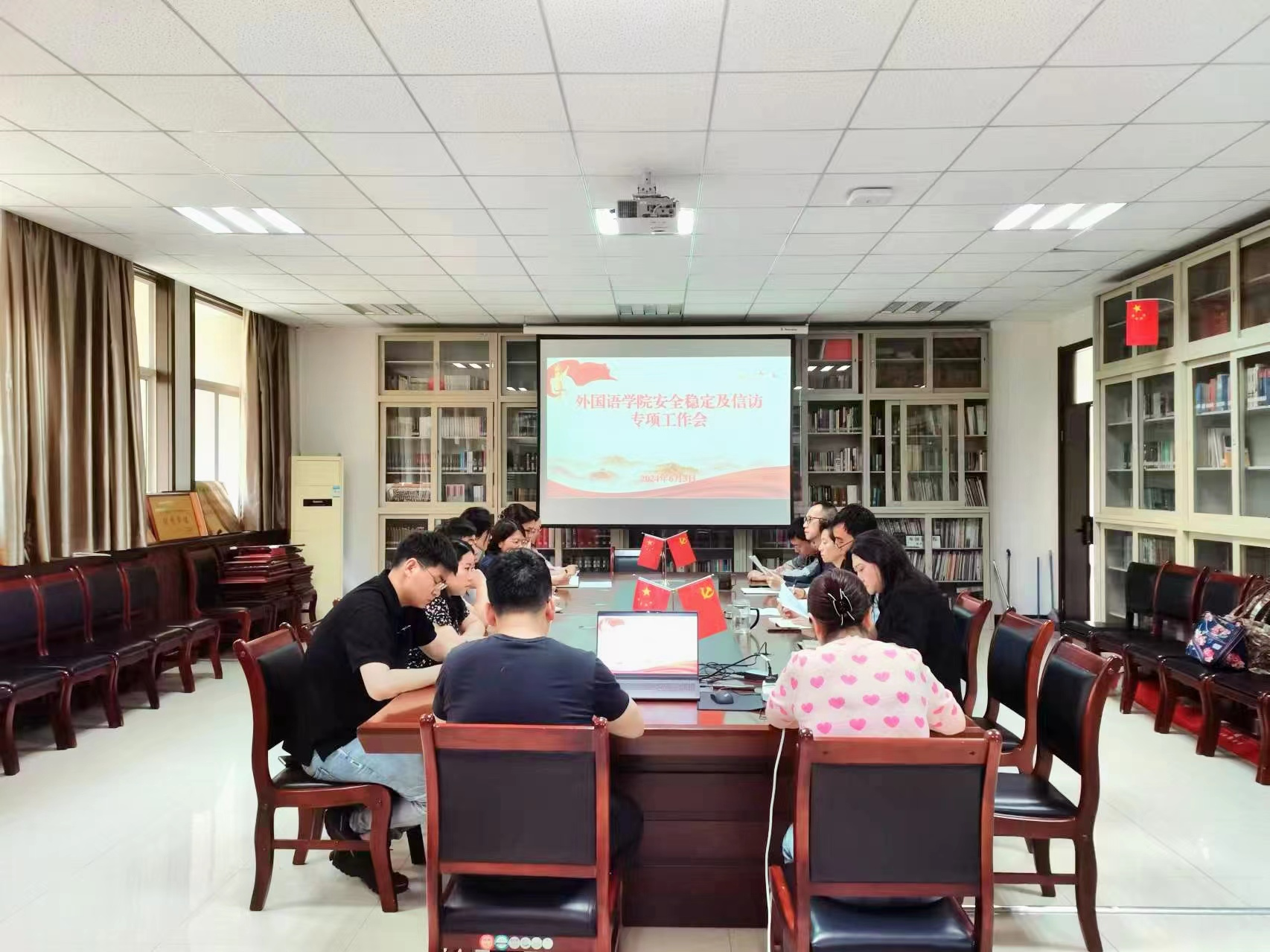 6月3日上午,外国语学院在学院资料室召开安全稳定及信访工作会议。学院领导班子成员、全体行政人员参加。学院党委书记杨华主持会议。 会议学习了《信访工作条例》《西北政法大学信访问题源头治理专项行动工作方案》,传达了学校关于安全稳定的会议精神,并对学院安全稳定及信访工作做了安排。 会议要求,一是要提高政治站位,增强责任意识,树牢底线思维,落实好值班值守制度,做好突发事件的预防与应急处置;二是要提升安全意识,加强消防安全、生命财产安全、实验室安全、宿舍安全、网络安全、信息安全和防范电信诈骗方面的宣传和教育;三是要切实畅通师生诉求表达渠道,进一步完善信访响应机制,建立信访问题源头治理工作台账,加强日常矛盾风险排查及研判;四是要发挥信访工作“倾听呼声、化解矛盾、维护稳定”的重要作用,进一步提升学院信访工作水平,坚持首问负责制,及时回应师生诉求,以行动筑牢校园安全稳定屏障。 (供稿:外国语学院 撰稿:马婧 审核:杨华)