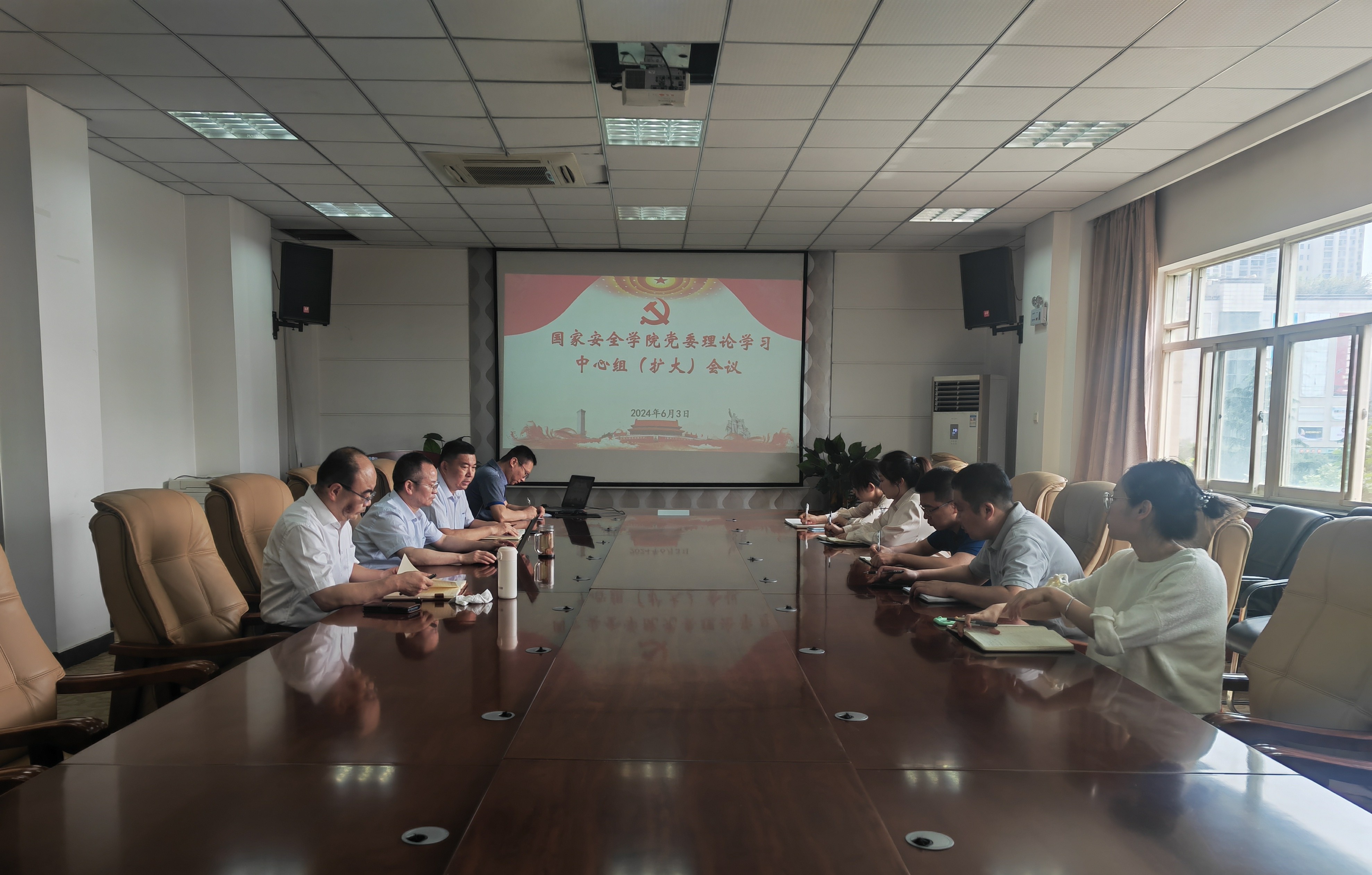 6月3日,国家安全学院党委在学院会议室召开理论学习中心组(扩大)学习会议。学院理论中心组成员、全体科级干部、辅导员参加会议。学院党委书记李政敏主持会议。 会议集体学习了习近平总书记关于全面加强党的纪律建设的重要论述和新修订的《中国共产党纪律处分条例》部分章节,学习校党委近期印发《西北政法大学学院党委工作规程》和《西北政法大学学院党政联席会议规程》,学习《西北政法大学从严管理处级干部若干规定》等内容。李政敏,党委副书记、院长舒洪水围绕学习内容,结合工作实际进行交流发言。 会议要求,学院全体师生党员要深入学习领会习近平总书记关于全面加强党的纪律建设的重要论述,坚持原原本本、逐项逐条学《条例》,全面完整准确掌握党规党纪,时刻对标对表,筑牢底线意识,不断增强遵规守纪的思想自觉和行动自觉;学院领导班子成员要以上率下,带头履行管党治党的主体责任,严格履行“一岗双责”,推动学院全面从严治党向纵深发展;要始终把党的政治纪律和政治规矩挺在前面,认真执行学院党委会、党政联席会“第一议题”和“三重一大”等议事决策机制,严格执行重大事项请示报告等制度,不断提升学院科学决策能力水平。 (供稿:国家安全学院 撰稿:王卓 审核:李政敏)