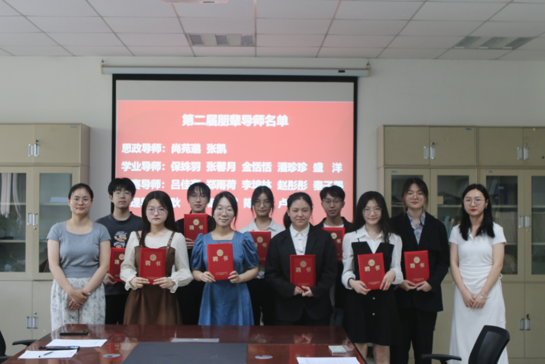 为进一步加强学风建设,激励优秀学生发挥朋辈引领作用,5月15日下午,民商法学院在学院资料室举行“知行”朋辈导师工作坊首届“朋辈导师”表彰会暨第二届“朋辈导师”聘任仪式。 学院党委副书记上官亚敏充分肯定了朋辈导师工作坊全体人员一年来的成绩和贡献,并对新一届朋辈导师寄予了厚望。她表示,朋辈导师是学院学风建设工作中的重要力量,希望同学们能够善于学习、担当作为,以专业的素养和高度负责的态度做好榜样引领示范。要善于发现、关注学生需求,让朋辈导师工作更有针对性实效性。要善于引导、激发学生潜力,努力和同学们一起互助成长。要善于沟通,做好桥梁纽带,成为辅导员老师教育管理服务学生的最得力助手。 朋辈导师工作坊指导老师杨亚男从朋辈分享、朋辈帮扶、朋辈引领等三个方面介绍了“知行”朋辈导师工作坊工作开展情况,对首批朋辈导师一年来的工作进行了总结。学院第二团总支书记曹宏鲜老师宣读了表彰决定,为表现优异的首届朋辈导师颁发了荣誉证书。 曹宏鲜和杨亚男为17名品学兼优、具有较强组织能力和责任心的第二届朋辈导师颁发了聘书,并集体进行了宣誓。朋辈导师代表赵穆然和陈果分别做了经验分享。 学院成立“知行”朋辈导师工作坊以来,始终坚持以学生需求为导向,以学生发展为根本,为学生搭建起“同伴教育 互助成长”的交流平台,在朋辈导师的带动下,学生之间营造出了“比学赶帮超”的浓厚学习氛围。学院将以朋辈导师为重要抓手,充分发挥朋辈导师的引领和示范作用,培育砺学笃行的优良院风学风。 (供稿:民商法学院 撰稿:上官亚敏 审核:朱茂)