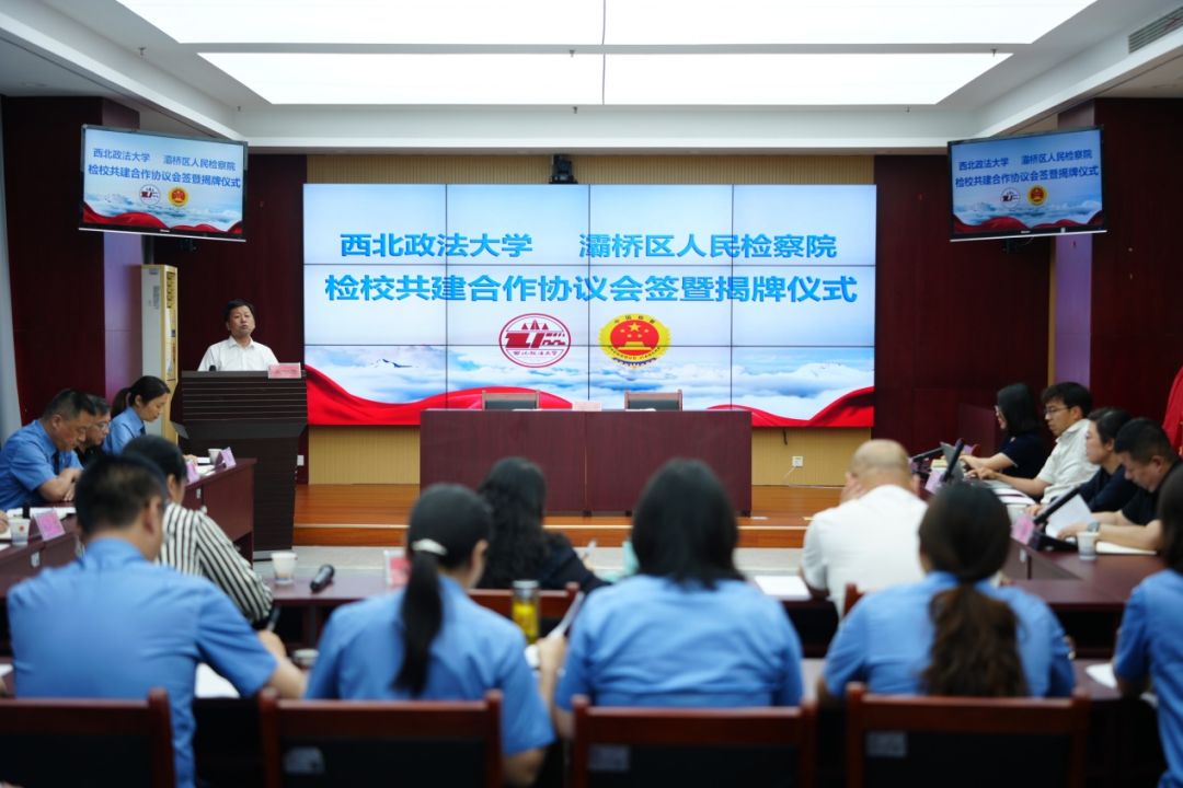 为积极响应最高检近日印发的《关于人民检察院在履行行政诉讼监督职责中开展行政违法行为监督工作的意见》,实现行政违法行为监督提质增效,5月21日下午,我校行政法学院(纪检监察学院)与西安市灞桥区人民检察院举行检校合作框架协议会签暨揭牌仪式。灞桥区委政法委常务副书记陈骏,灞桥区人民检察院领导班子成员、各部门负责人和我校行政法学院(纪检监察学院)党政领导、教师代表参加仪式,仪式由灞桥区人民检察院党组书记、检察长王晓明主持。 行政法学院(纪检监察学院)院长姬亚平详细介绍了学院的情况,并对双方的合作机制、合作方式、合作成果等提出了希望和要求。 行政法学院(纪检监察学院)副院长杜国强与灞桥区人民检察院副检察长王旭清共同签署了检校共建合作协议。 双方共同为“教学研究实践基地”“行政检察实务研究基地”“检察公益诉讼实务研究基地”揭牌。 杜国强,行政法学院(纪检监察学院)副教授杨永康、赵哲分别围绕行政违法行为监督中职权法定的理解、行政检察、行政公益诉讼等主题进行交流,陈骏、王晓明以及与会的西安市人大代表与西安市政协委员就检察业务如何依托检校共建平台凝聚合作共识、拓展合作空间、畅通沟通渠道、实现优势互补与联合提升、实现双赢共赢的效果、加快形成良性互动等展开了全面研讨与交流。 行政法学院(纪检监察学院)依托专业优势和学科平台,坚持以研促教、教研相长,与实务部门积极合作开展理论实务研究并反哺教育教学。此次检校合作,将进一步实现教学资源和司法资源的共享与优势互补,力争在理论研究、学科建设、人才培养等方面实现新突破。 (供稿:行政法学院(纪检监察学院) 撰稿:赵哲 审核:赵玎玎)