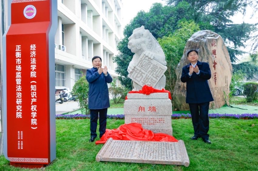 12月12日,正衡集团向我校经济法学院(知识产权学院)捐赠甪端雕塑揭幕仪式成功举行。我校校长范九利,省新联会会长、正衡集团董事长雷华锋,省委统战部六处处长赵健出席。副校长张荣刚主持仪式。 范九利对正衡集团向经济法学院(知识产权学院)捐赠甪端雕塑表示诚挚的谢意,并对出席活动的所有嘉宾表示欢迎。他表示,甪端雕塑的落成既是我校与正衡集团校企合作不断深入的最新成果,也是双方共同助力全面依法治国、推进法治中国建设、共同培养法治人才的庄严承诺。相信在省委统战部、省新联会的支持下,经济法学院(知识产权学院)、正衡市场监管法治研究院能够在经济法治领域高质量开展各类学术研究与实践活动,助力校企合作结出更多丰硕成果。 雷华锋对我校、省委统战部、省新联会一直以来给予正衡集团的信任与支持表示感谢,对我校获批“法学”和“法律”两个一级学科博士点表示诚挚的祝贺。他表示,正衡集团企业价值观与西北政法大学秉持的“严谨、求实、文明、公正”理念高度一致。捐赠甪端雕塑既是正衡集团积极履行社会责任、助力高校教育事业发展的体现,也是双方更进一步开展校企合作的象征。正衡集团将与经济法学院(知识产权学院)共同发挥自身优势,建好正衡市场监管法治研究院这一平台,致力于营造公平正义的法治环境和良好的营商环境,努力打造西部地区市场监管与法治领域的重要智库平台。 雷华锋与范九利共同为甪端雕塑及经济法学院(知识产权学院)导视牌揭幕 我校党委统战部、党政办公室、经济法学院(知识产权学院)、正衡集团等单位负责人以及经济法学院(知识产权学院)师生代表参加活动。 (供稿:经济法学院(知识产权学院) 撰稿:魏静 审核:倪楠)