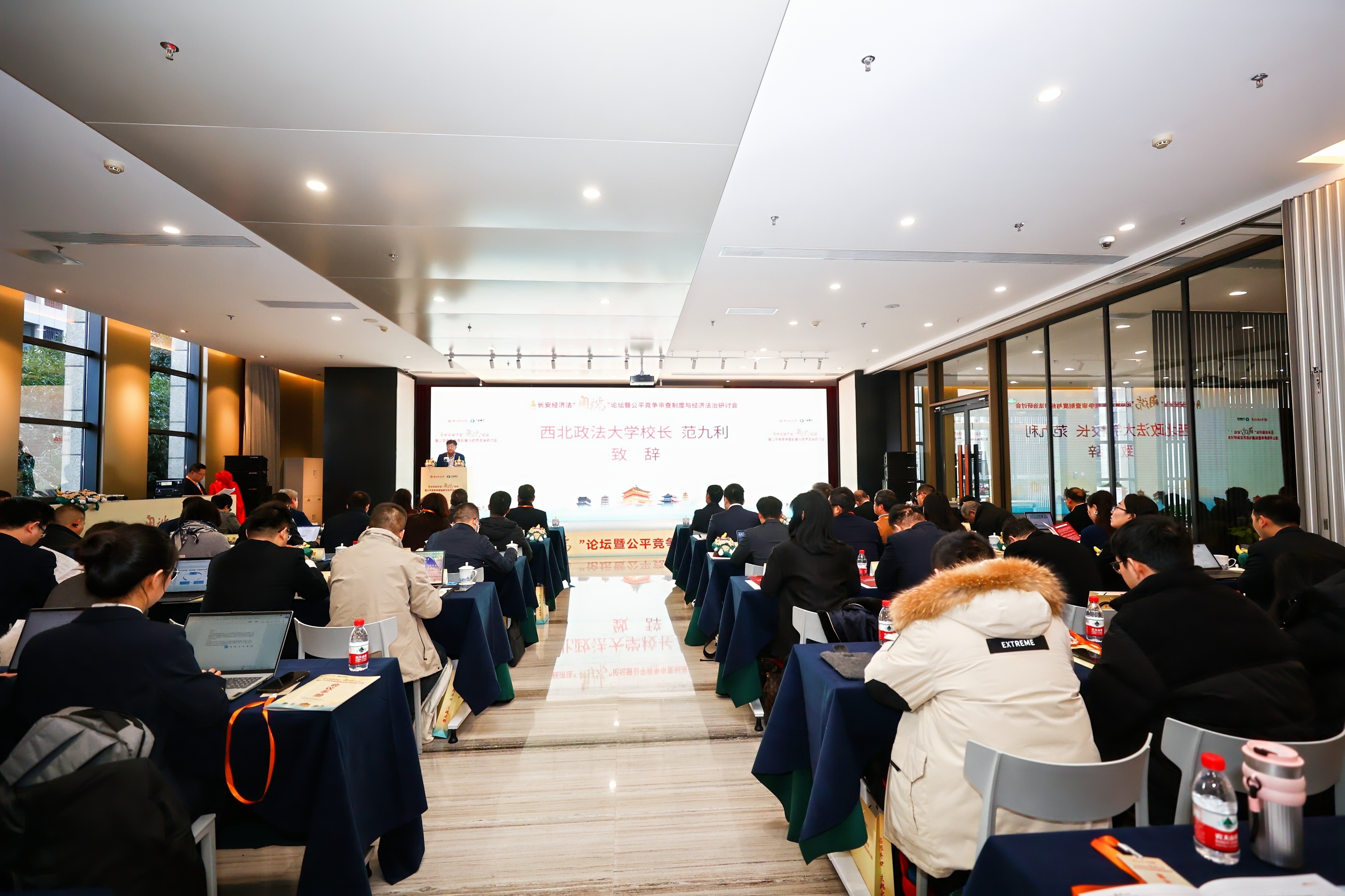 12月21日,第二届长安经济法“甪端”论坛暨公平竞争审查制度与经济法治研讨会在西安召开。论坛由我校、陕西正衡投资控股集团有限公司共同主办,我校经济法学院(知识产权学院)、陕西省法学会市场监管法治研究会、《法律科学》编辑部、正衡市场监管法治研究院、陕西省创新团队“统一大市场下市场监管法治体系研究团队”联合承办。陕西省法学会党组书记、专职副会长王凯华,我校校长范九利,《法律科学》编辑部主编杨建军,正衡集团董事长雷华锋出席。 王凯华、范九利、雷华锋、杨建军分别致辞。论坛开幕式发布了由经济法学院(知识产权学院)、陕西省市场监督管理局反垄断局共同完成的《陕西省优化实施公平竞争审查路径调研报告》。 范九利、雷华锋共同为正衡公平竞争审查中心揭牌 主旨发言阶段由我校经济法学院(知识产权学院)院长倪楠主持。分论坛分别由我校经济法学院(知识产权学院)副院长肖新喜、陕西省市场监督管理局阎鹏主持,《法律科学》副主编马治选、孙尚鸿进行与谈。 本届论坛围绕“公平竞争审查制度与经济法治”交流思想,凝聚共识,为共同推动经济法治建设、构建高水平社会主义市场经济体制提供了有益的智力成果与实践参考。来自中国经济体制改革研究会、上海交通大学、武汉大学、对外经济贸易大学、上海政法学院、南开大学、广西大学、郑州大学等多所高校和智库的专家学者,以及我校经济法学院(知识产权学院)师生代表参加本届论坛。 (供稿:经济法学院(知识产权学院) 撰稿:魏静 审核:倪楠)