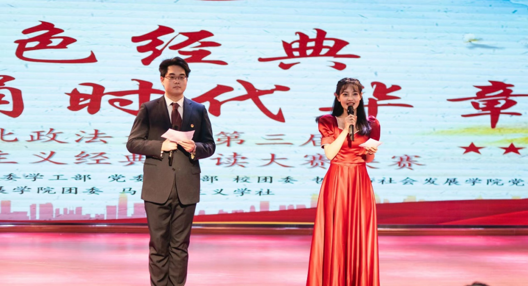 11月30日晚,由党委宣传部、党委学工部(学生处)、党委研工部、校团委、哲学与社会发展学院共同主办,哲学与社会发展学院团委和马克思主义学社承办的“读红色经典,诵时代华章”第三届马克思主义经典精读大赛决赛在长安校区举行。校党委副书记郭武军参加活动,相关职能部门负责人、学院学生工作负责人及师生代表近400人观看了比赛。 十月初开赛以来,共有来自14个学院近200人组成的35组队伍报名参赛。经过初赛、复赛、预决赛,共10组参赛队伍脱颖而出,成功入围决赛。 决赛现场,各参赛选手紧紧围绕“读红色经典,诵时代华章”这一主题,结合自身的专业知识、实践经历与阅读感悟,通过演讲诵读、情景演绎等艺术表现形式,展示出对红色经典作品的深刻理解和独特诠释,充分彰显了西法大学子激情迸发的青春风采与奋发有为的精神面貌。 马克思主义学院院长魏奇担任大赛评委,他高度肯定了选手们的精彩表现,并即兴朗诵《沁园春·长沙》,将现场气氛推向高潮。校合唱团为大家带来《黄水谣》和《保卫黄河》。 经过激烈角逐,作品《光明赞歌》获一等奖,作品《愿以寸心寄华夏,且将岁月赠山河》《囚歌 自由之声》获二等奖,作品《国之英者 吾之光亮》《巾帼不让须眉,百年党史“她”力量》《青春的模样》获三等奖,作品《回延安》《忆一抹红色峥嵘,延一份精神长流》《青春中国》《不朽华章》获优秀奖。经过网络投票,作品《回延安》获得最佳人气奖。 马克思主义经典精读大赛是教育引导广大青年学生研读马克思主义著作、学习马克思主义思想、坚定马克思主义信仰的重要活动载体。今后,哲学与社会发展学院将继续以习近平新时代中国特色社会主义思想为指导,依托马克思主义学社开展理论育人活动,用红色经典涵养品格、淬炼思想、指导实践,培养更多坚定的马克思主义者。 (供稿:哲学与社会发展学院 撰稿:慕婧 审核:寇汉军)