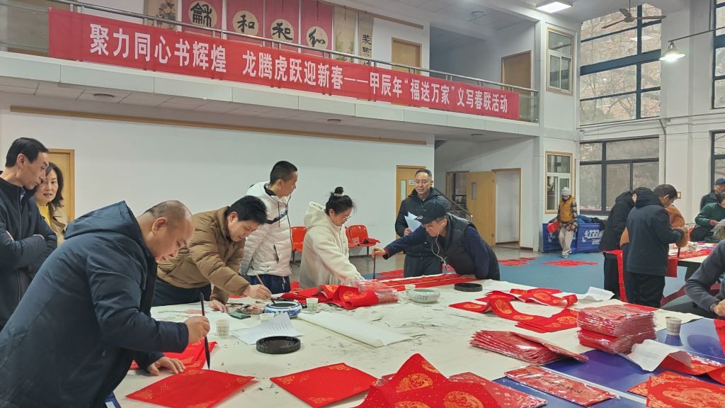 玉兔欢歌辞旧岁,金龙起舞迎新春。2月1日,我校工会、社区、离退休管理处和老教授协会联合举办的“聚力同心书辉煌,龙腾虎跃迎新春”——甲辰年“福送万家”义写春联活动在雁塔校区教工俱乐部举行,来自我校和西安石油大学等兄弟高校的10多位书法家为广大师生义写春联,送上浓浓的新年祝福。 活动现场翰墨飘香、暖意融融。一张张洒金红纸相继铺开,一丝丝墨香沁人心脾,书法家们挥毫泼墨,行、楷、隶、篆等多种书体各显神韵。 “千秋伟业添锦锈,万里鹏程展鸿图” “民安国泰逢盛世,风调雨顺颂华年”,一幅幅透着喜气、带着吉祥的对联跃然于红纸之上,浓浓的情意、真诚的祝福溢于字里行间。师生们拿到满载祝愿的春联和寓意喜庆的“福”字后笑逐颜开,整个活动洋溢着新年的喜庆气氛。 活动弘扬了中国传统文化,也寄托了我校广大师生辞旧迎新、接福纳祥、祝福国泰民安的美好愿望。 (供稿:后勤保障处 撰稿:金山 审核:陈建宁)