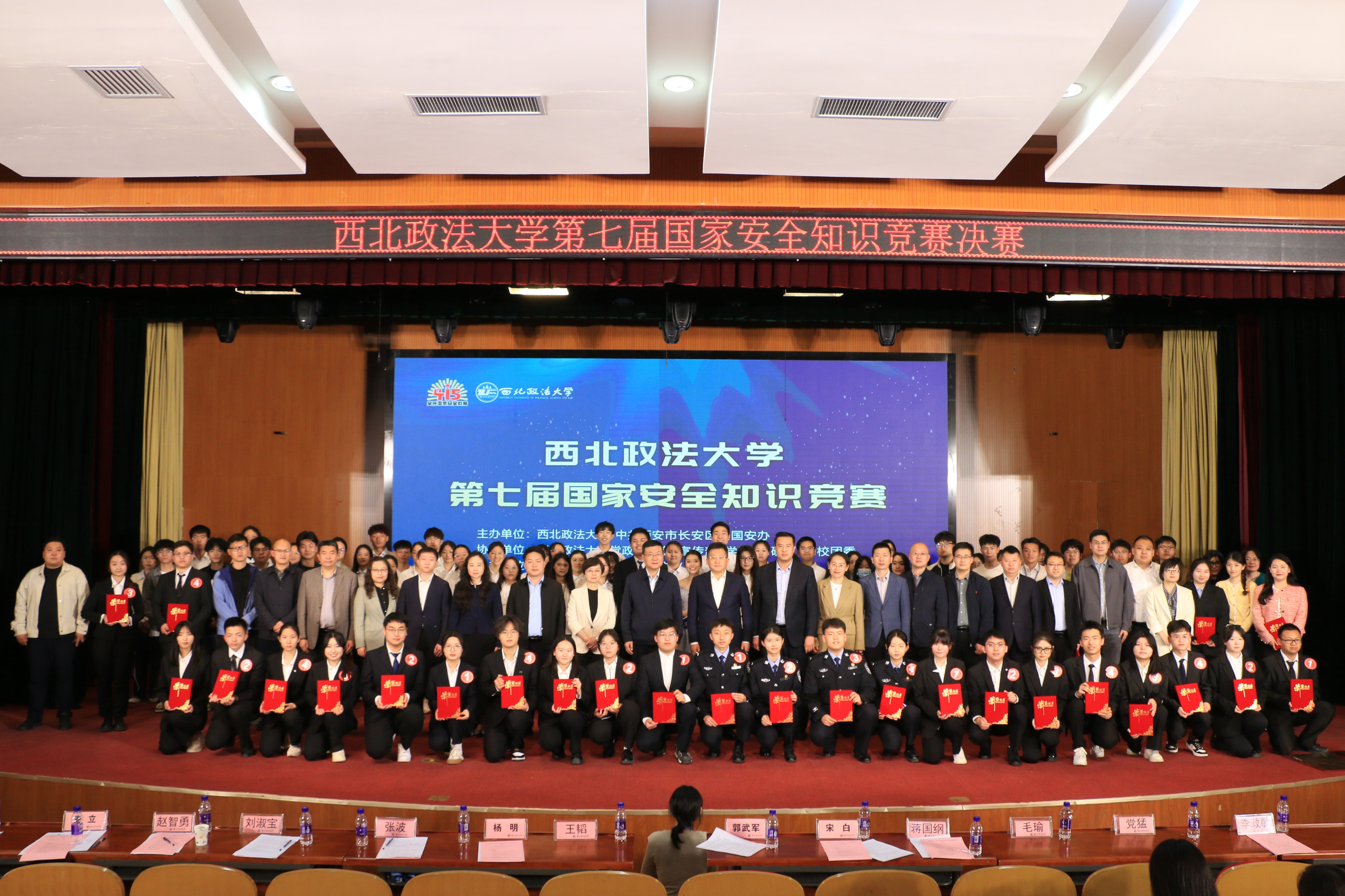 3月31日,我校第七届国家安全知识竞赛决赛在长安校区满天星学术报告厅举行。中共长安区委副书记王韬、我校党委副书记郭武军出席活动。长安区委国安办,我校党政办公室、党委宣传部、学工部、研工部、校团委等相关部门负责人,各学院学生工作负责人、辅导员及学生代表500余人参加活动。 郭武军在讲话中表示,全校师生要深入学习总体国家安全观和习近平总书记关于国家安全的重要论述,坚持以总体国家安全观为统领,系统谋划、精准发力,推动国家安全宣传教育走深走实。要扎实推动学校国家安全教育常态化,落实立德树人根本任务,筑牢意识形态工作的前沿阵地。要牢固树立国家安全意识,系统掌握国家安全知识,增强维护国家安全能力,争当维护国家安全的积极参与者和践行者。 王韬表示,希望同学们坚定理想信念,做国家安全的守护者;坚守安全底线,做国家安全的宣传者;坚持砥砺奋进,做国家安全的践行者。要时刻保持清醒头脑,强化底线思维,增强忧患意识,不断提高对危害国家安全行为的鉴别力、判断力,自觉同危害国家安全的行为作斗争。 本届知识竞赛于今年3月正式启动,分为“网络答题、复赛笔试、决赛竞答”三个阶段,全校学生积极参与、认真准备。在决赛中,六支参赛队以积极的精神风貌和扎实的知识功底呈现了一场精彩的比赛。 经过激烈比拼,国家安全学院(反恐怖主义法学院)荣获一等奖,民商法学院、经济学院荣获二等奖,经济法学院(知识产权学院)、商学院(管理学院)、公安学院(公共安全法学院)荣获三等奖,外国语学院、行政法学院(纪检监察学院)、哲学与社会发展学院、刑事法学院、国际法学院、政治与公共管理学院荣获优秀奖。国家安全学院(反恐怖主义法学院)、民商法学院、国际法学院、商学院(管理学院)、经济法学院(知识产权学院)、经济学院荣获优秀组织奖。 (供稿:国家安全学院(反恐怖主义法学院) 撰稿:杨柳 审稿:李政敏)