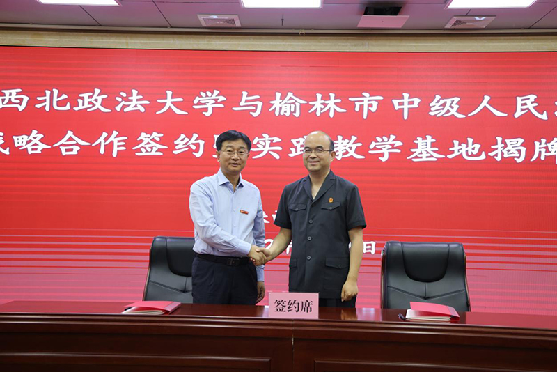 6月16日上午,我校与榆林市委政法委、榆林市中级人民法院、榆林市人民检察院、榆林市司法局签订战略合作协议,并与榆林市中级人民法院、榆林市人民检察院、榆林市司法局共建“法科研究生实践教学基地”。