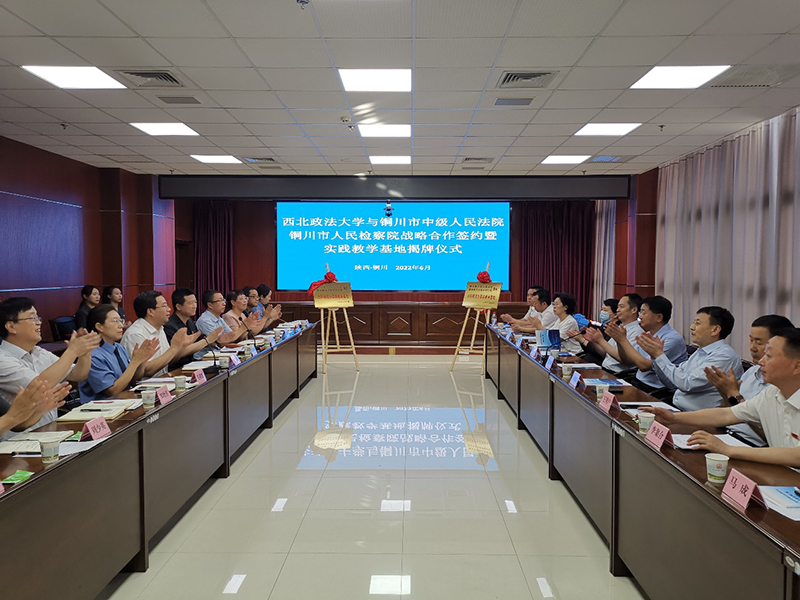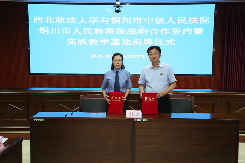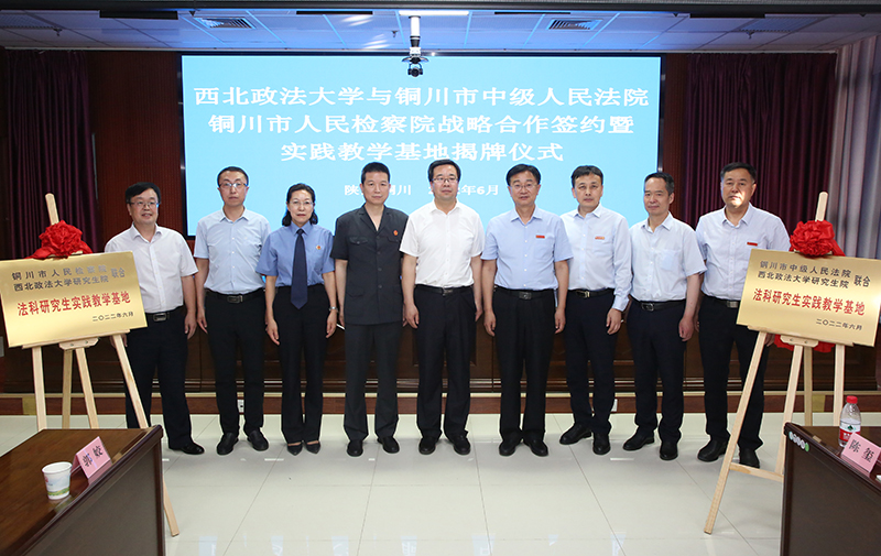 6月14日,校党委副书记、校长范九利一行赴铜川市政法系统调研。调研期间,范九利校长拜访了铜川市市长郝光耀,并与铜川市中级人民法院、铜川市人民检察院签订《战略合作协议书》。铜川市委常委、市委政法委书记曹全虎主持签约暨揭牌仪式。校党委委员、副校长马朝琦,铜川市中级人民法院党组书记、院长田鹤城,铜川市人民检察院党组书记、检察长毛朝霞出席相关活动,双方共同为“法科研究生实践教学基地”揭牌。