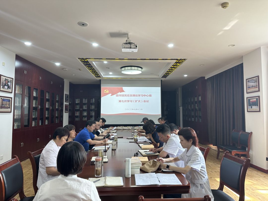 7月12日上午,图书馆党总支在长安校区图书馆立心书屋召开理论学习中心组(扩大)学习研讨会议,图书馆党总支书记翁晓磊主持会议。