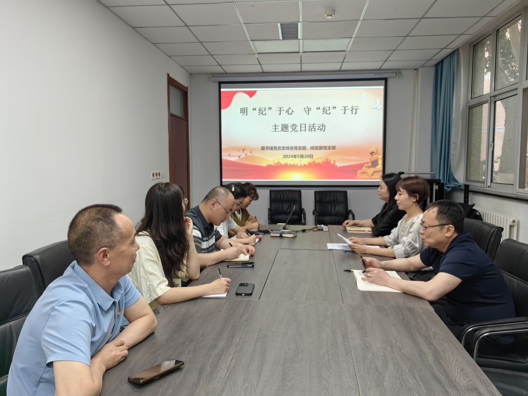 5月20日下午,图书馆党总支综合党支部、阅览部党支部开展“明‘纪’于心 守‘纪’于行”主题党日活动,支部全体党员参加。