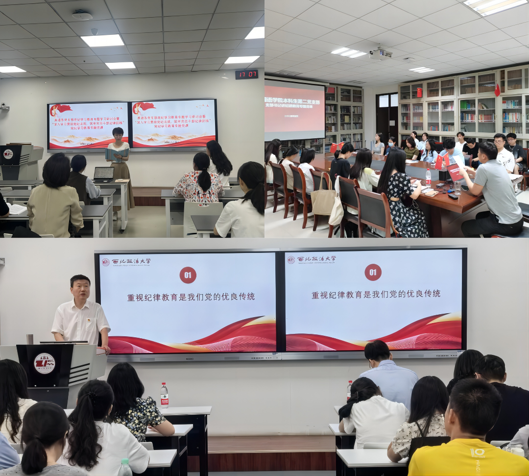 聚焦学用结合,专题研讨深思深悟。各党支部紧扣“六项纪律”,结合自身工作、学习实际进行学习研讨,以研讨开拓思维、以交流深化理解。邀请校党委副书记郭武军为学生党员及入党积极分子讲授党纪学习教育专题党课。英语系党支部书记以《深入学习贯彻党纪党规,筑牢党员干部纪律防线》为题讲专题党课,引导党员教师强化纪律意识,严守纪律规矩。本科生第二党支部书记以《锤炼党性,严守纪律》为题讲专题党课,提升学生党员政治素养,在学思践悟中不断增强纪律性。