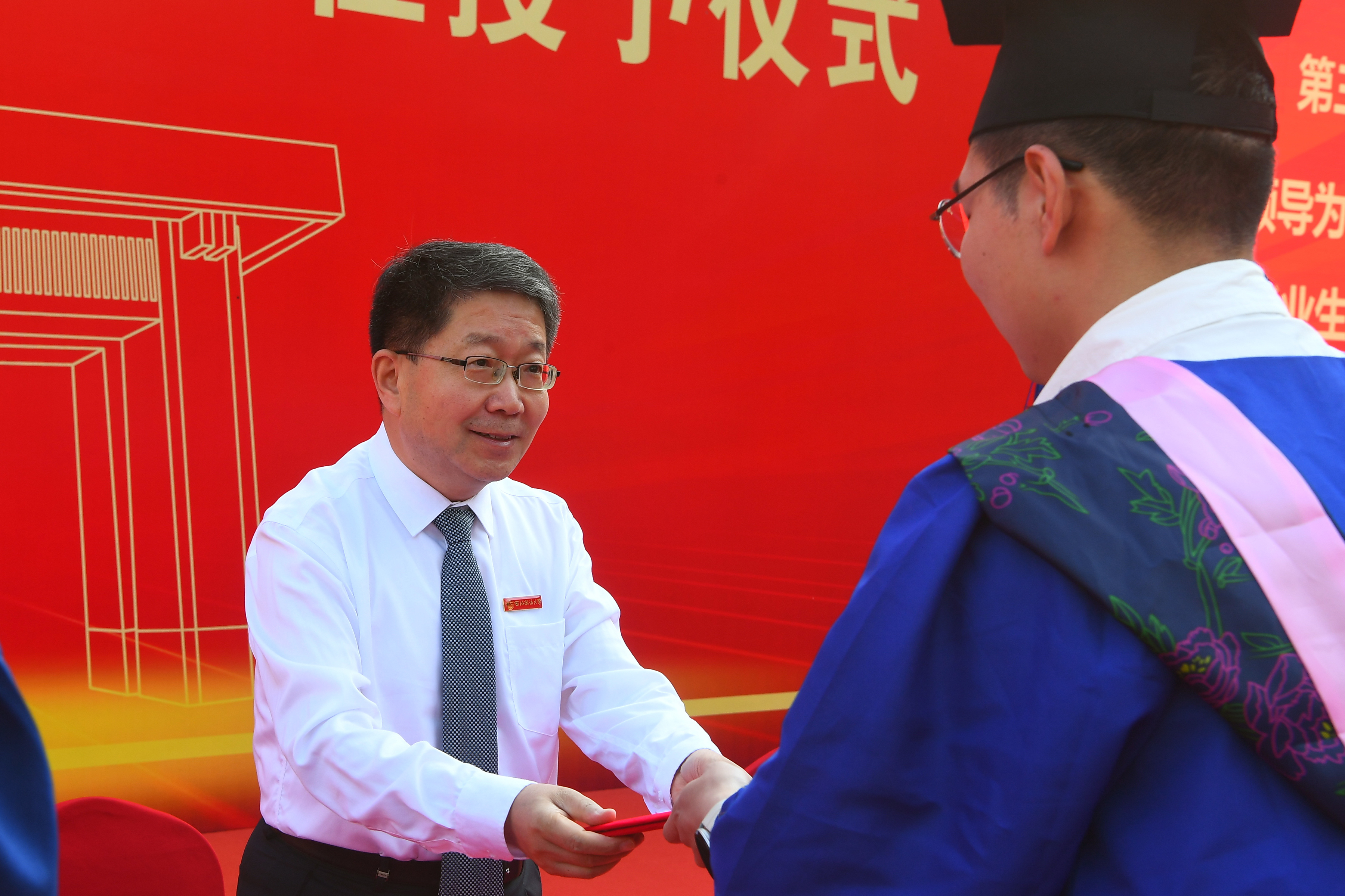校党委书记孙国华为优秀毕业生颁发证书