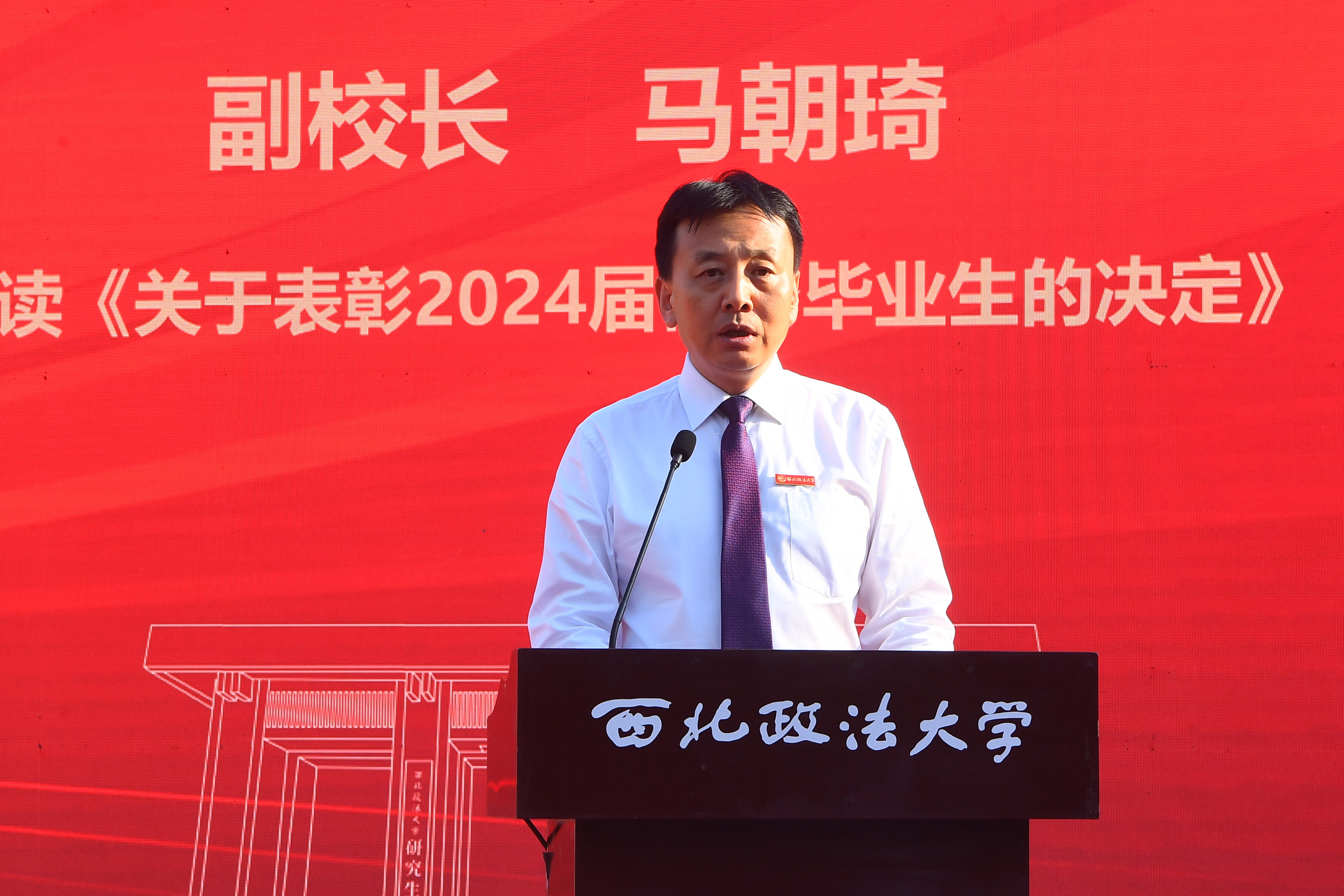 马朝琦宣读了《关于表彰2024届优秀毕业生的决定》,校领导为我校优秀毕业研究生代表与内地生源志愿赴疆赴藏研究生代表颁发荣誉证书。