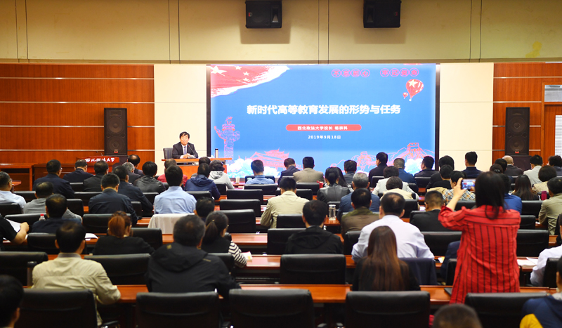 9月18日下午,我校在长安校区图书馆一楼多功能厅组织“不忘初心,牢记使命”主题教育领导干部读书班第二次集体学习。校长杨宗科作题为《新时代高等教育发展的形势与任务》的辅导报告。人事处处长董玮和研究生院院长孙昊亮作交流发言。校纪委书记、校主题教育领导小组副组长肖道远主持会议。