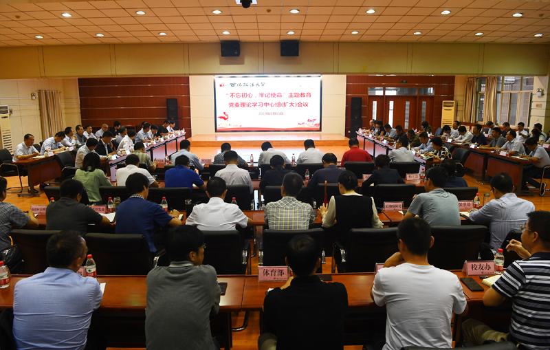 9月11日上午,我校在长安校区图书馆一楼多功能厅召开党委理论学习中心组(扩大)学习会议,安排部署“不忘初心、牢记使命”主题教育。中共陕西省委主题教育第六巡回指导组组长、省科协副主席丁德科,指导组副组长、西安美术学院党委副书记任晓峰,指导组成员卢杨、贺新建、颜高、高炜出席会议。校党委理论学习中心组成员,各二级党组织书记,各学院院长及机关处室主要负责人参加会议。校党委书记孙国华主持会议。