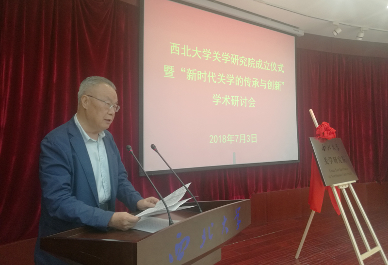 7月3日,国内首家实体性关学研究专门机构关学研究院揭牌仪式暨“新时代关学的传承与创新”学术研讨会在西北大学举行。陕西省委高教工委书记董小龙、西北大学党委书记王亚杰为关学研究院揭牌。陕西省社科联名誉主席、我校资深教授赵馥洁先生出席关学研究院揭牌仪式并讲话。