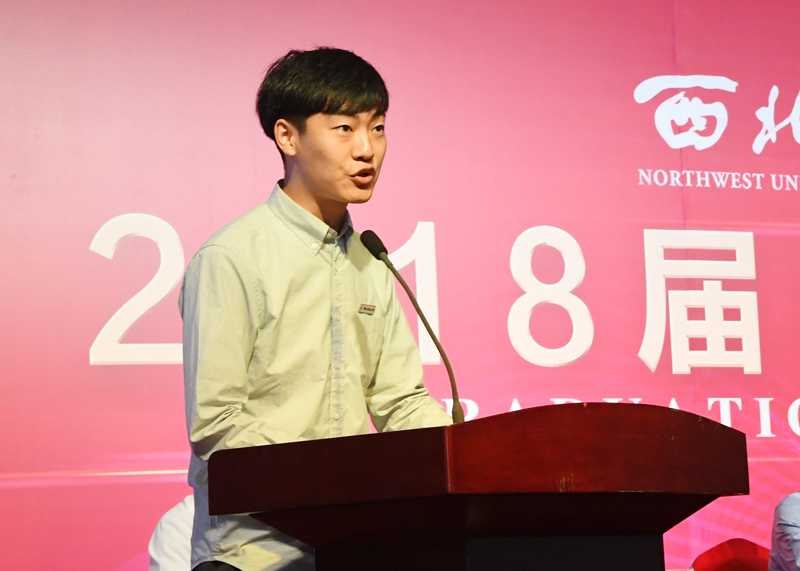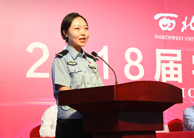 公安学院2014级10班韩美超同学代表毕业生向辛勤付出的领导和老师表达最衷心的感谢和最崇高的敬意,他们将带着西法大人特有的风采,勇往直前!