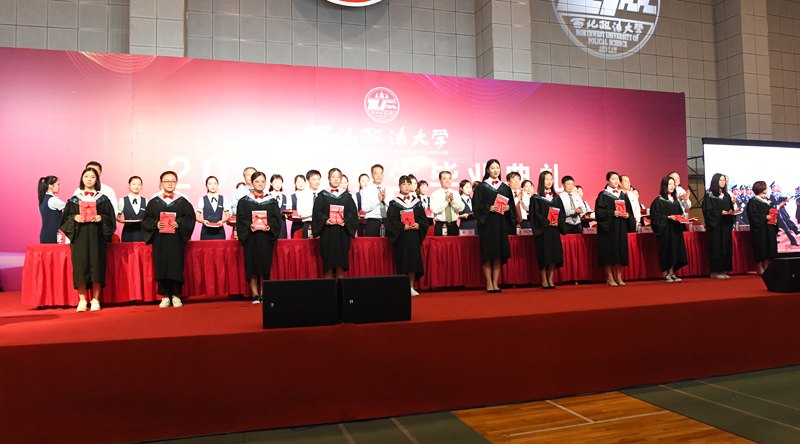 校党委副书记李平安宣读《中共西北政法大学委员会关于表彰2018届优秀毕业生的决定》,对马名扬等177名本科毕业生和齐树等22名内地生源赴西藏、新疆工作的本科毕业生予以表彰,并授予他们“优秀毕业生”荣誉称号。