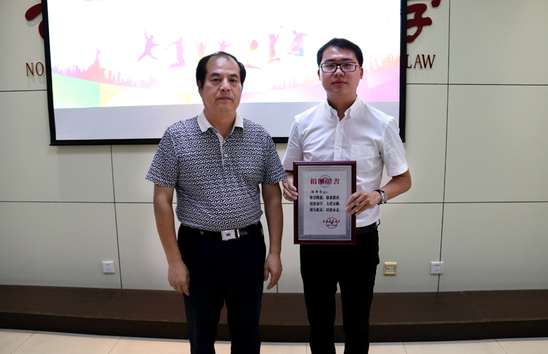 “瑾熙”奖学金设立人陆泽质对所有获奖学生表示了祝贺,他希望我校学子能坚守法律人的梦想和初衷,无私无畏,敢说真话,脚踏实地,勇于实践,扎实掌握专业技能,将来为中国的法治建设做出自己的贡献。