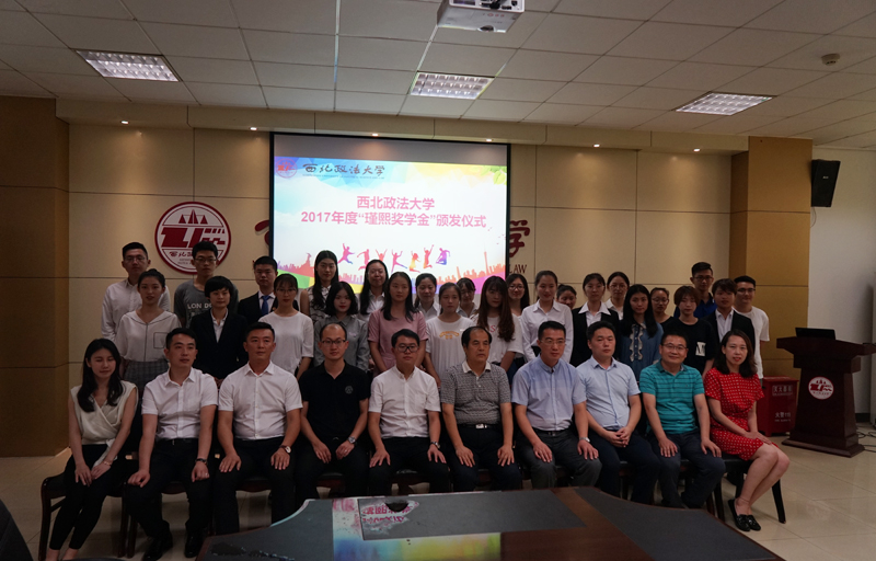 6月28日下午,我校2017年度瑾熙奖学金颁发仪式在我校长安校区图书馆一楼会议室举行。总会计师刘鹏伟,副校长、学工部部长、学生处处长张军政,瑾熙奖学金设立人、陆瑾熙控股集团有限公司董事长陆泽质一行五人,学院主管学生工作的党委(副)书记代表,辅导员代表及25名获奖学生参加了本次颁发仪式。颁发仪式由学工部副部长、学生处副处长蒋国纲主持。