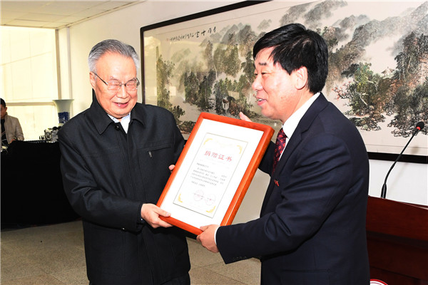 杨宗科向赵馥洁颁发了捐赠证书。随后,参加揭牌仪式的嘉宾与赵馥洁共同为“立心书屋”进行了揭牌。