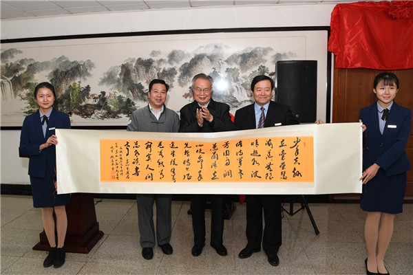 我校哲学专业七九级全体同学向“立心书屋”捐赠了玉璧,著名书画家、校友刘亚谏捐赠了张载画像,大家书画院院长张亚林捐赠了抄录赵馥洁教授诗作的书法作品。