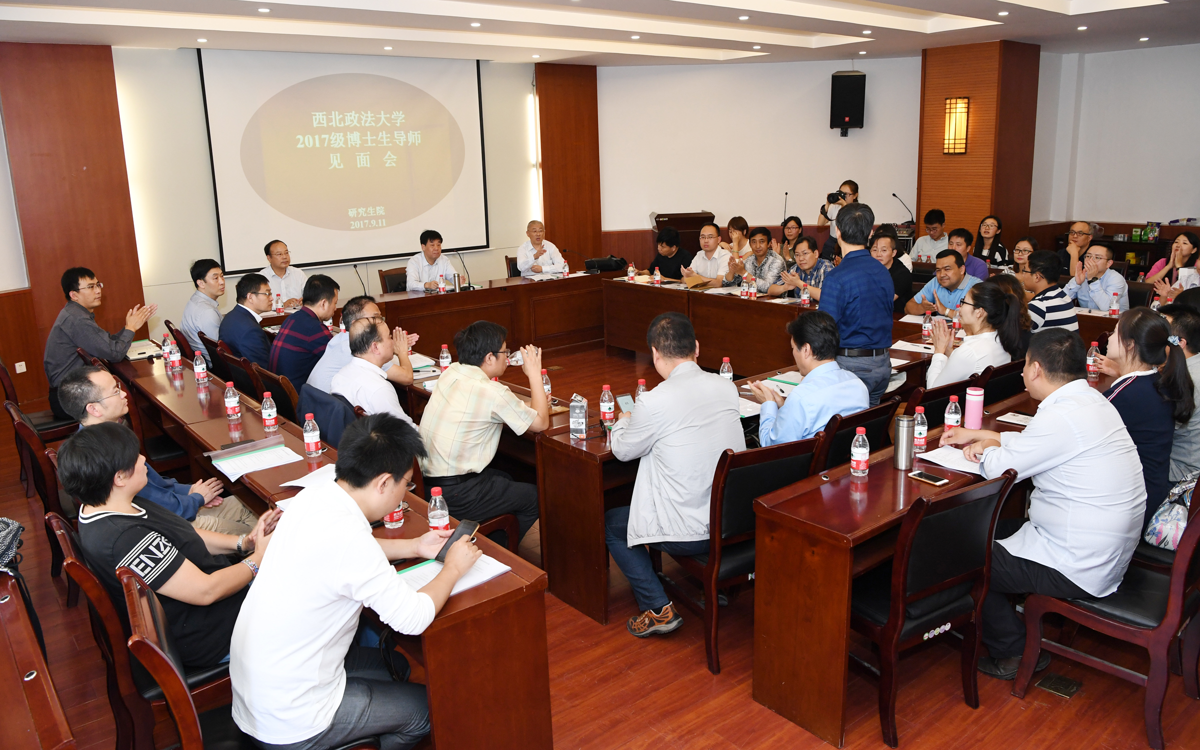9月11日下午,我校2017级博士研究生导师见面会在雁塔校区刑事法学科基地学术报告厅举行。校长杨宗科教授、副校长王健教授,博士生导师代表、研究生院工作人员、在校博士生代表以及2017级全体博士生参加见面会,见面会由王健主持。