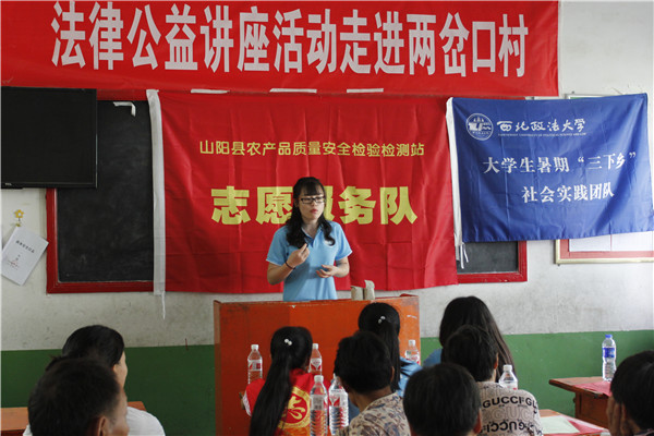 与此同时,我校老牌学生社团法律服务中心的同学们在山阳县城和偏远乡镇进行普法宣传和法律咨询活动。他们围绕侵权、婚姻、劳动、合同等多个方面向群众普及基本的法律常识,解答他们遇到的法律问题,在实践中躬身前行,讲述西法大故事。