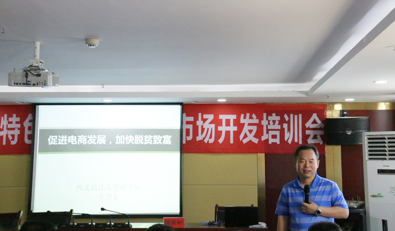 举办山阳县农村特色产业电子商务市场开发培训暨签约仪式。7月12日,在山阳县电子商务服务中心举办了由张荣刚、王卫东和张夏恒等教师主讲的特色产品电子商务市场开发培训,当地电子商务龙头企业、电商专业户、合作社负责人、特色农产品经销商和村镇干部等直接带领贫困户精准脱贫的人员参加了培训。培训会前,商学院班子和山阳县委常委、副县长李伟,副县长孙西平共同见证了电子商务服务合作协议签约。