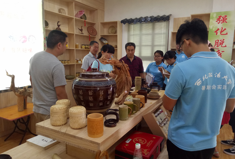 电子商务师生暑期工作队的现场调研与对接咨询工作。7月9日至15日,王卫东、方丽娟、赵欣辰等教师带领30名学生走访了十里铺街道办事处、漫川关镇的8个村落,重点访谈对接了山阳万福茶业协会、莲花社区蜂蜜专业户等60户电子商务从业农户,对其提出专业性建议,并建立后续在线支持联络;发放问卷,调查研究了中草药、核桃等特色产品电子商务开展情况。