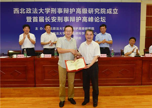 王瀚宣读西北政法大学刑事辩护高级研究院聘任决定