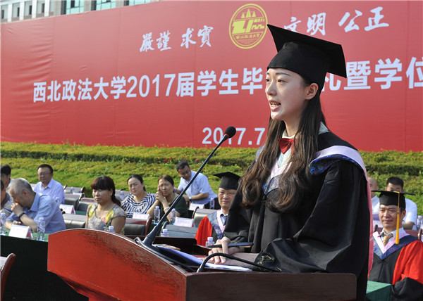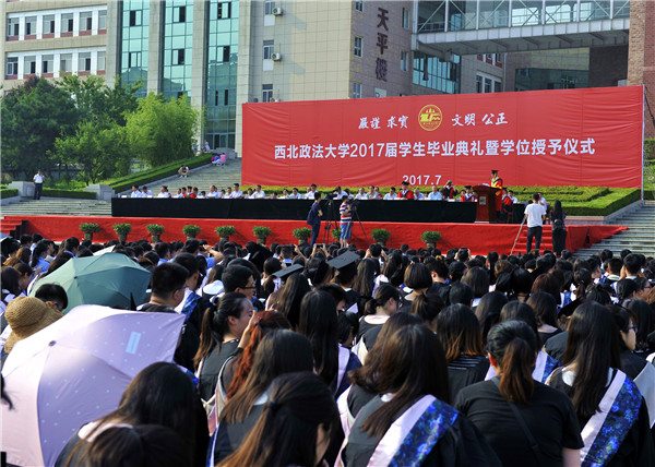 “干杯往事,踏歌前行!”7月3日上午,西北政法大学2017届学生毕业典礼暨学位授予仪式在长安校区天平广场隆重举行。4923名毕业生以壮怀凌云之风貌,奔向人生新旅程。