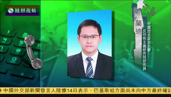6月14日晚19:20凤凰卫视中文台播出的最新一期《震海听风录》以当前国际恐怖组织“伊斯兰国”在亚洲的扩张与亚洲各国应对为主题。该访谈节目邀请了前台湾地区“安全局”第一处副处长萧台福、前美国共和党海外党部亚太区主任委员方恩格、香港岭南大学亚洲太平洋研究中心主任张泊汇、马来西亚太平洋研究中心首席顾问胡逸山等专家学者就“伊斯兰国”在东南亚、东亚地区的扩张以及亚洲各国的应对策略等相关议题进行了充分讨论。受西北政法大学校长贾宇教授指派,西北政法大学反恐怖主义研究院专职研究员兰迪博士通过电话连线的方式接受了主持人邱震海先生的采访,并与节目嘉宾进行了交流。