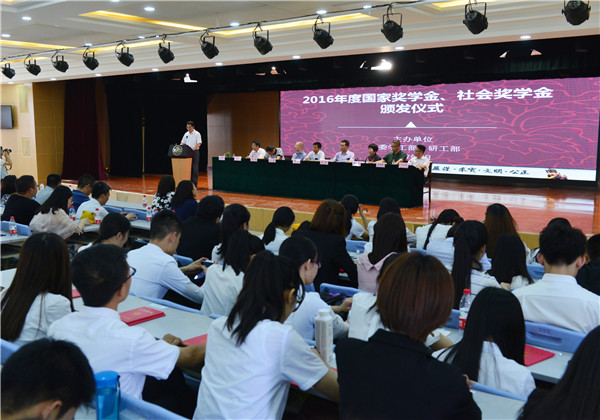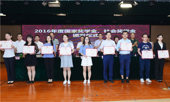 研工部部长、研究生院院长王健宣读了2016年度获得国家奖学金、大泽奖学金、龙城奖学金、海伦奖学金的学生名单,参会的领导和嘉宾为获得奖助学金的学生颁发了荣誉证书。