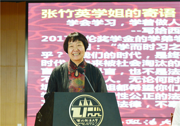 龙城奖学金设立者代表陈刚校友在向获奖学生表示祝贺的同时,希望同学们牢记校训,勿忘师恩,将“严谨、求实、文明、公正”的校训作为人生格言,通过坚持不懈的努力实现自己的人生抱负。大会现场,大泽奖学金设立人聂峰辉校友也送来寄语。他勉励同学们将“法治信仰、中国立场、国际视野、平民情怀”的西法大大旗继续高高擎起。