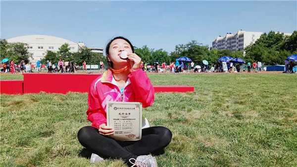 4.2016级经济法三班李静怡同学获得女子100米跨栏跑第七名