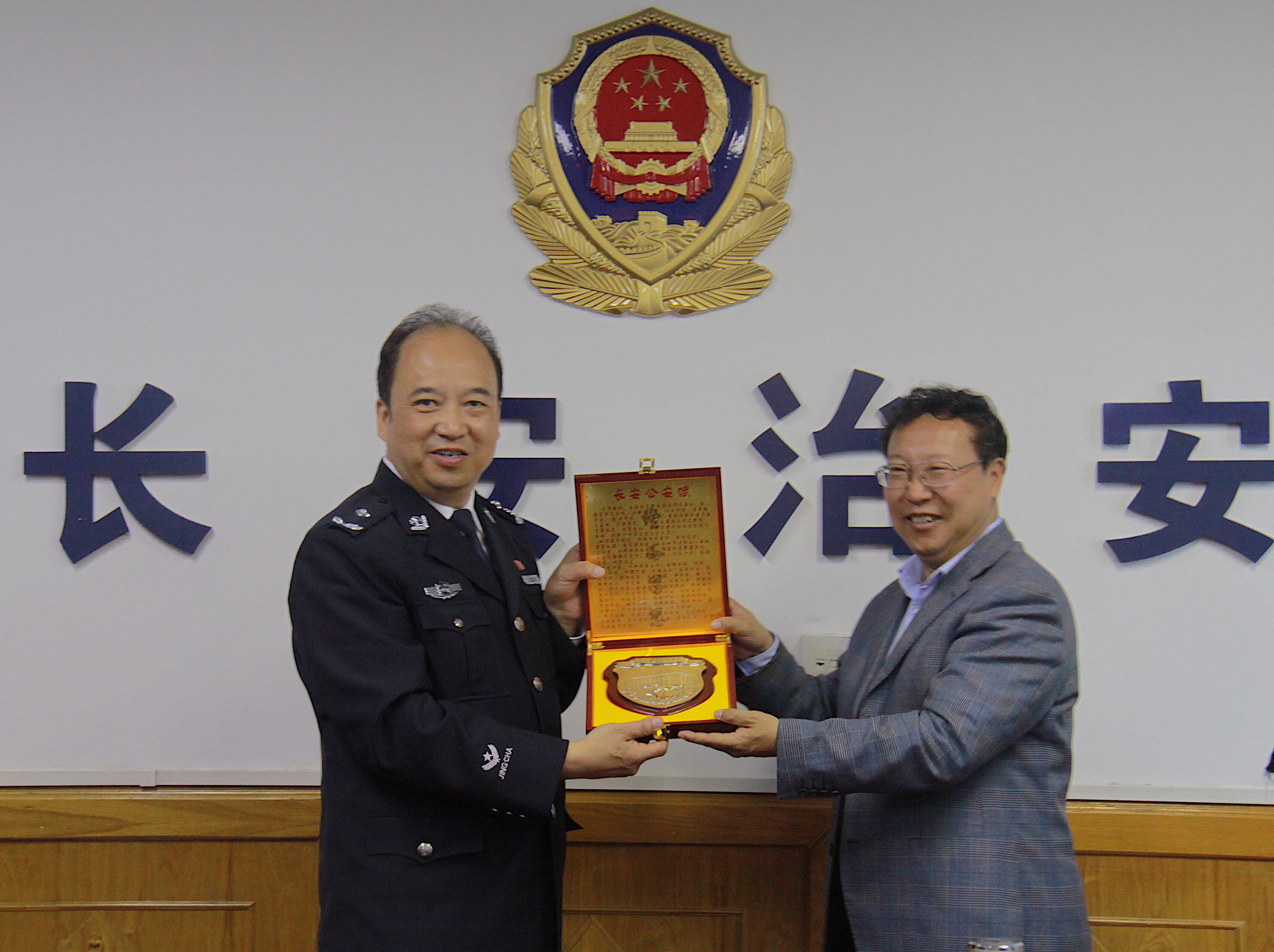 公安学院院长程军伟与长安区政协副主席、分局局长李会贤共同签署了《共建协同创新战略合作协议》,教务处副处长陈京春向分局授予了“实践教育基地”牌匾,分局领导向学校赠送了具有象征意义的长安分局警徽徽标。与会其他老师与各职能警种进行了深入交流,并参观了分局办案中心和讯问室等。此次签约及基地授牌,对我校公安类本科专业人才培养搭建了良好的平台。