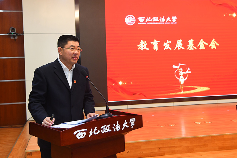 第一项,西北政法大学党委书记孙国华致辞。孙国华指出,在全国上下认真学习贯彻党的十九届五中全会精神,中央全面依法治国工作会议刚刚闭幕,全校掀起深入学习贯彻习近平法治思想热潮之际,西北政法大学教育发展基金会的成立,恰逢其时,意义重大。教育发展基金会成立后,将成为社会各界人士支持学校事业发展、校友回报母校的重要渠道。他希望,基金会要在相关部门的指导和监督下,遵守国家法律,依照章程办事,实行科学管理;要加强与其他高校基金会的沟通和合作,学习先进的管理经验和运行机制,探索适合校情的资金募集机制、项目管理方式,促进我校基金会健康发展;要积极筹措资金,不断壮大教育发展基金,为建设高水平大学贡献力量。学校将坚持以服务获支持、以贡献换发展的理念,大力支持基金会的工作,使之成为学校人才培养、科学研究、服务社会的重要载体,以实际行动争取校友和社会各界人士的支持。他希望基金会能发挥好作用,为把西北政法大学建设成为国内一流的教学研究型高水平大学,为社会进步、法治繁荣、民族复兴、国家昌盛做出更大贡献!