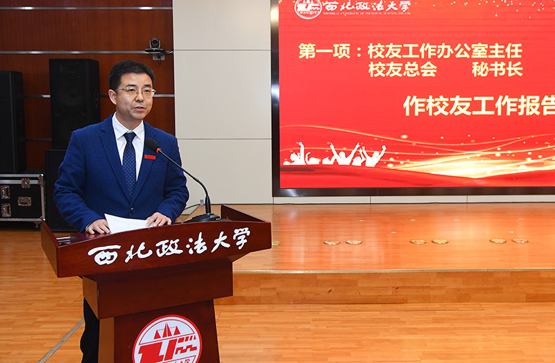 最后,校长、校友总会会长杨宗科对本次大会进行了总结并发表了讲话。他首先代表学校对不惧严寒“回家”参加大会和在云上或线上关注大会活动的所有校友,表示衷心的感谢和热烈的欢迎。他指出,教育发展基金会的成立在学校办学治校历史上具有里程碑意义,是社会参与学校治理的重要方式之一,这标志着以党委领导、校长负责、教授治学、民主管理、社会参与、依法治校为构成要素的现代大学治理体系在学校得以完善。西北政法大学在党和国家全面依法治国的战略布局当中,在培养“德才兼备、德法兼修”高素质法治人才的崇高使命当中,责任重大,使命光荣。西北政法大学教育发展基金会得到了校友和社会各界广泛的参与、慷慨的捐助和积极的支持,这是因为大家对学校的发展充满了信心,西北政法大学必须、只能,也一定能越办越好。他希望,教育发展基金会能够把所有的校友会、校友和社会各界人士对西北政法大学的爱心用好,并能很好的传递下去,更好的服务和鼓舞广大教师和学生,为建立“法学特色鲜明,多学科协调发展”的教学研究型高水平大学做出更大的贡献。杨宗科校长希望西北政法大学所有在校的和已经毕业了的同学能够继续弘扬“政治坚定、实事求是、勇于创新、艰苦奋斗”的老延大优良传统,传承和发展“法治信仰,中国立场,国际视野,平民情怀”的育人理念,共同为学校的事业发展贡献力量。
