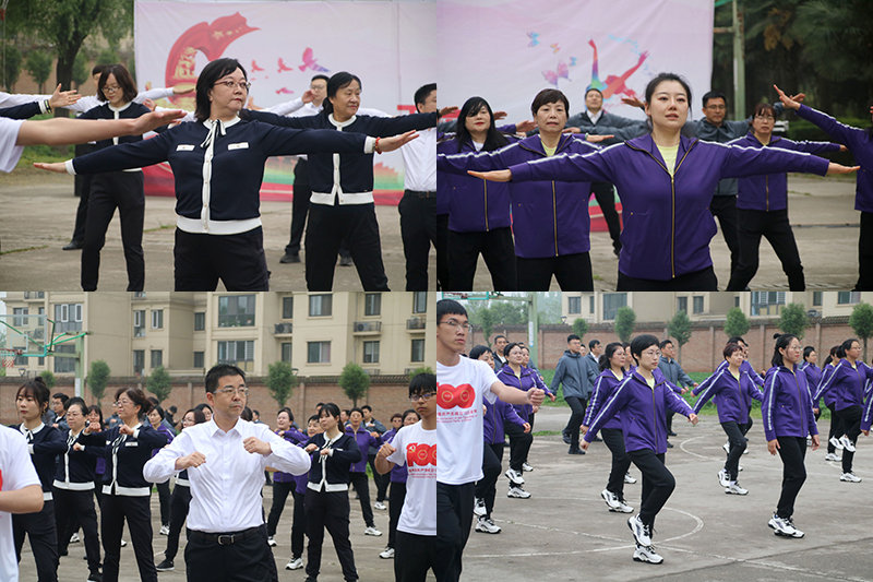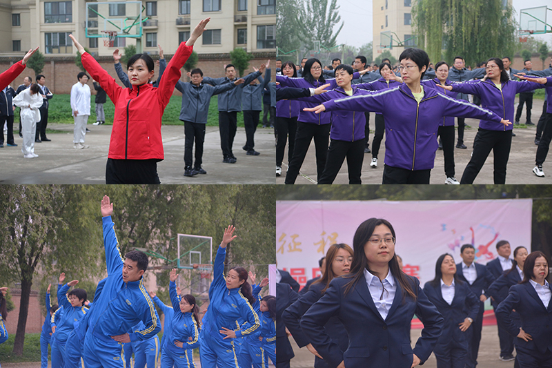 表演结束后,2021年教职工健身操团体比赛拉开帷幕。各单位教职工代表热情高涨、精神饱满,动作整齐划一、准确有力,呈现了一场健与美的盛宴,展示了昂扬向上的精神风貌,精彩的比赛赢得了师生的阵阵掌声和喝彩声。