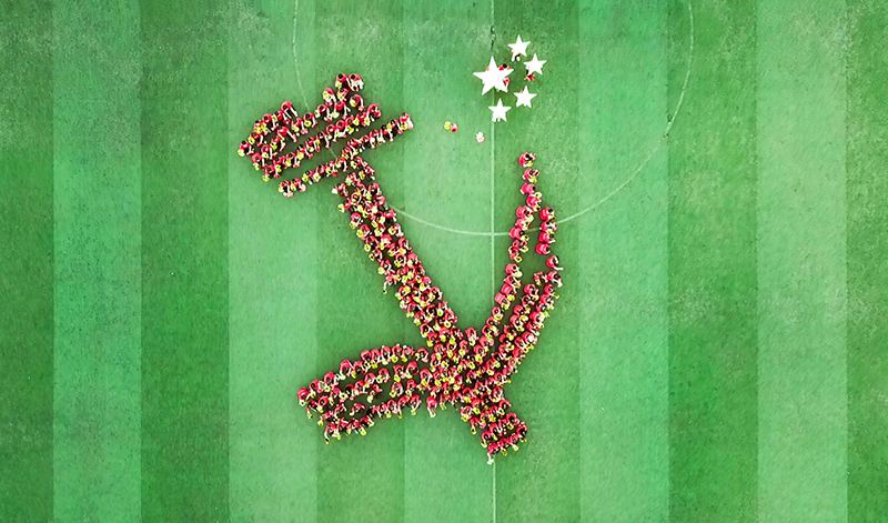 2021年是中国共产党成立100周年。开幕式表演中,广大师生通过丰富多彩的艺术展示和文艺表演向建党100周年表达了最真挚的祝福。民商法学院的大型团体操《永远跟党走》主题鲜明、阵型变换精彩,美感十足。舞蹈《舞动的青春》展现出经济学院青年学子的蓬勃朝气,将他们对祖国的忠诚告白美妙地融入到动感的舞步之中;“不忘初心、继续前进”,离退处老同志富有活力的集体舞,热情洋溢不输少年,成为场上一道靓丽的风景线;经济法学院学子身着红衣,手舞彩球,在红歌嘹亮中献舞《祝福百年》,以热情饱满的姿态庆祝中国共产党成立100周年;哲学与社会发展学院的舞蹈串烧《JUST DANCE》激情四射、朝气满满,兼具潇洒与柔美;“百年大党,扬帆启航”,商学院的《鼓动百年》大气磅礴,红绸舞动、鼓声震天,为师生带来了一场视听盛宴;公安学院《利刃出鞘》铿锵有力、声势煊赫,矫健敏锐的身姿和豪气冲天的气势展示了他们扎实的基本功与昂扬的斗志,令人观之热血沸腾;刑事法学院《青春“刑”动》舞蹈活力四射,对经典歌曲进行了全新演绎,为田径场点染青春色彩;“黄土荡天、红绸飞舞”,行政法学院的《安塞腰鼓》极具陕北风情,豪放洒脱的步伐与富有气势的呐喊展现了劳动人民的淳朴热情,把整场气氛推向了最高潮。