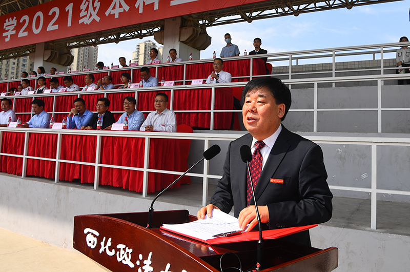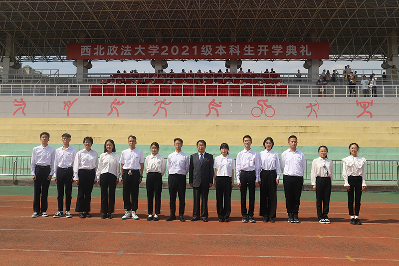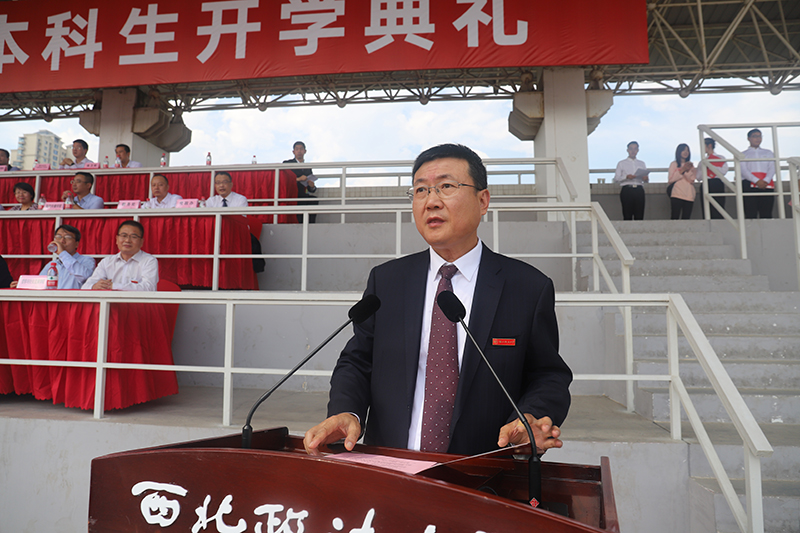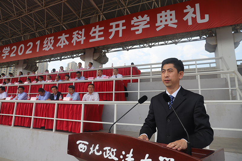 校党委书记孙国华,校长杨宗科,校党委副书记李平安,校党委副书记、纪委书记、监察专员肖道远,校党委副书记郭武军,副校长李玉朝、王健、张军政、张荣刚,党委委员、党委组织部部长李燕,校长助理樊铁虎出席大会。各学院院长、党委书记,各职能部门、教辅单位负责人,教师和学生代表以及全体2021级本科生参加大会。郭武军主持开学典礼。