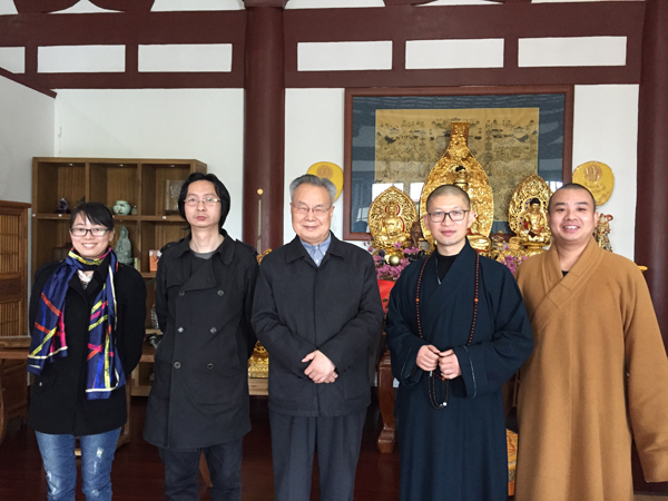 中国佛学院普陀山学院常务副院长会闲法师、基地副主任心举法师、钟锦老师与赵馥洁先生在醍醐院亲切合影