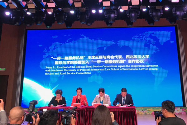 4月27日,由西安市司法局、西安国际港务区管委会、北京融商一带一路法律与上市服务中心等单位主办的“一带一路服务机制”与自由贸易区国际商事法律服务能力和综合需求对话论坛在西安国际港务区管委会召开。西安市人民政府副市长肖西亮在论坛上致辞,来自主最高人民法院、司法部、陕西省高级人民法院、西北政法大学、中国政法大学、中国以及意大利、尼日利亚、马来西亚、印尼等国律师等相关部门的领导与法律专家300多人参会。我校国际法研究中心主任、丝绸之路区域合作与发展法律研究院院长王瀚教授,国际法学院院长刘亚军教授、副院长潘俊武教授等应邀参加论坛,王瀚教授在主论坛做主题发言,刘亚军院长代表国际法学院与“一带一路服务机制”主席王丽签署学院加入“‘一带一路’服务合作协议”。