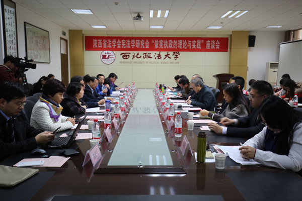 12月4日上午,为迎接第二个国家宪法日,陕西省法学会宪法学研究会在西北政法大学长安校区图书馆一楼会议室召开“依宪执政的理论与实践”座谈会。陕西省法学会研究部主任魏清利、西北政法大学副校长王瀚教授、陕西省法学会宪法学研究会部分代表、西北政法大学行政法学院部分教师及学生参加此次座谈会。